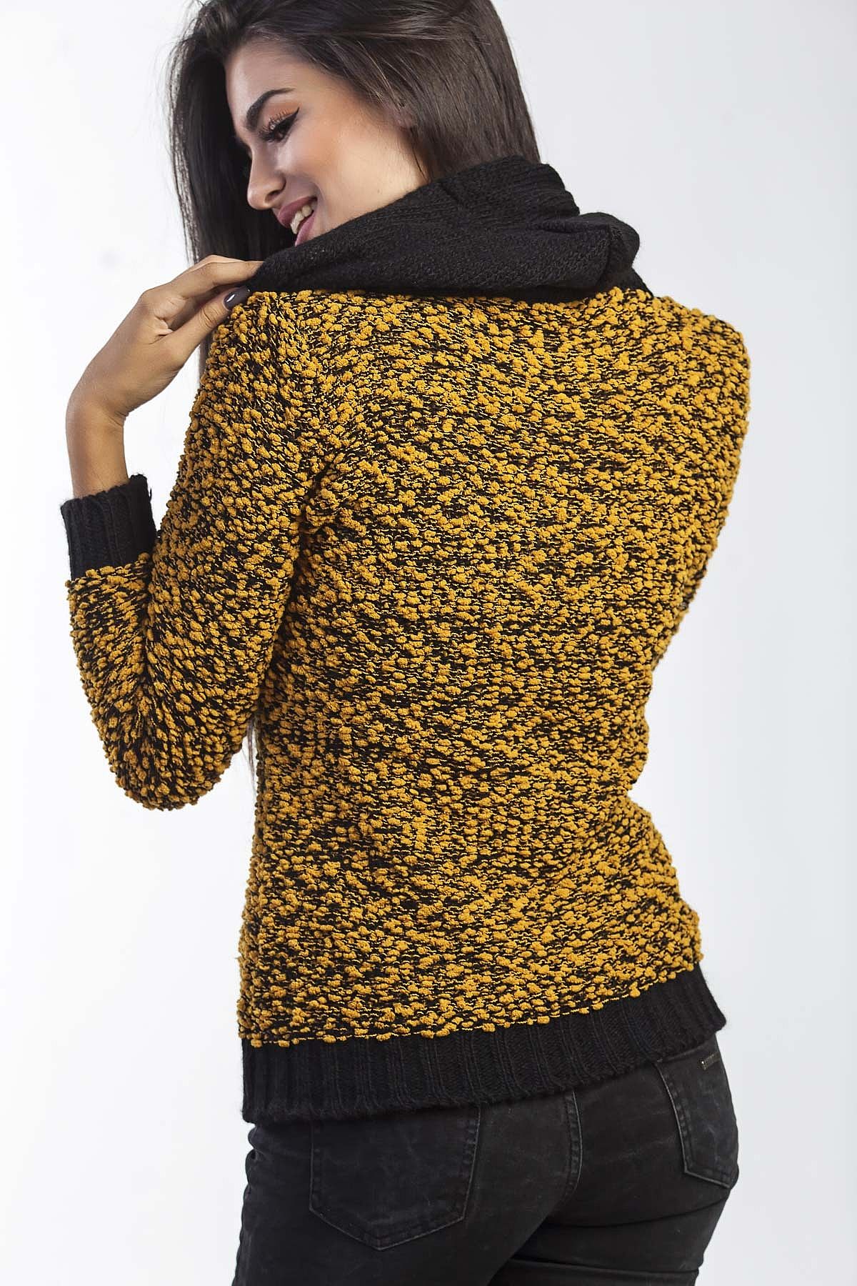 Πλεκτό κίτρινο chenille με μαύρη τσέπη στο μπροστινό μέρος και κουκούλα επίσης μαύρη.