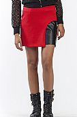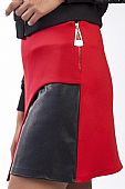 Φούστα mini κόκκινη με μαύρη λεπτομέρεια από eco leather και χρυσό φερμουάρ στο πλάι.