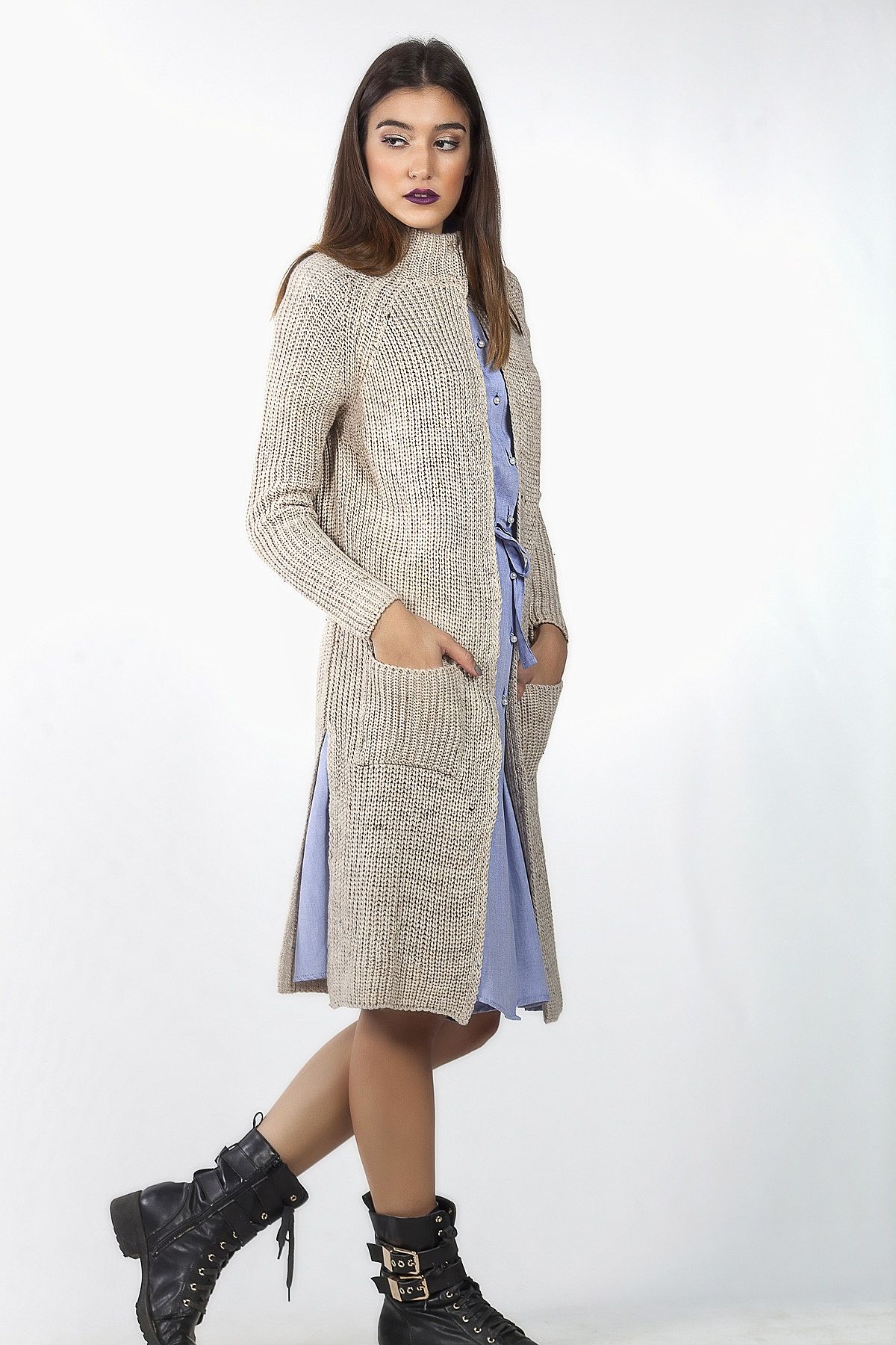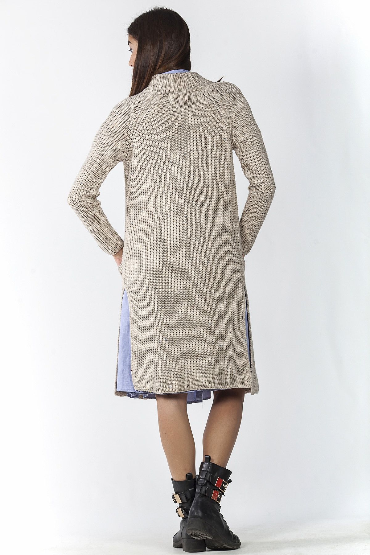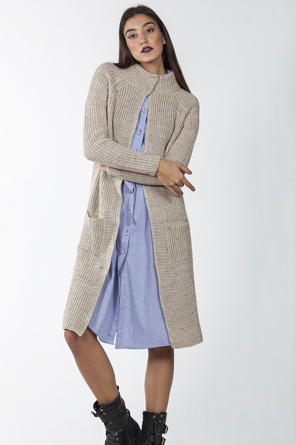 Ζακέτα πλεκτή μπεζ μακρυά