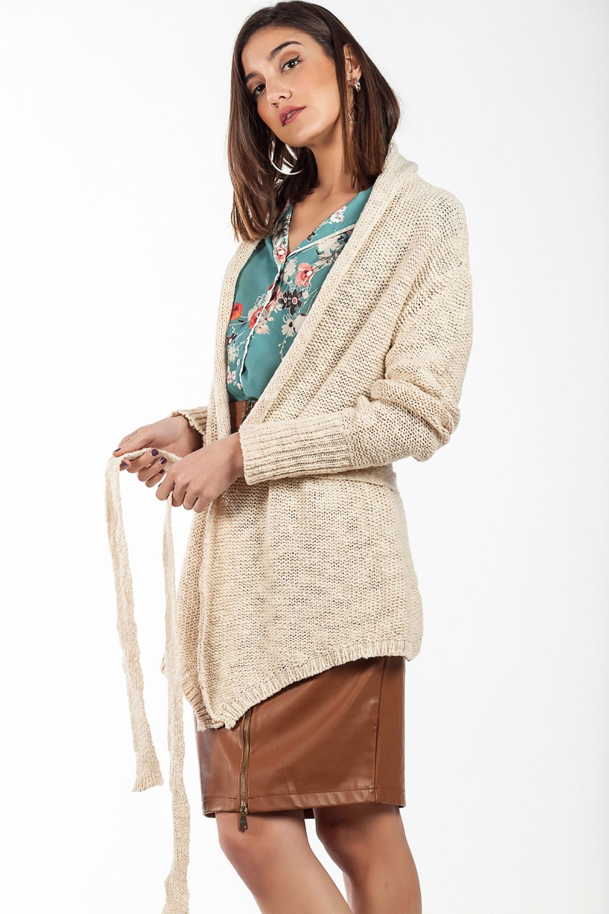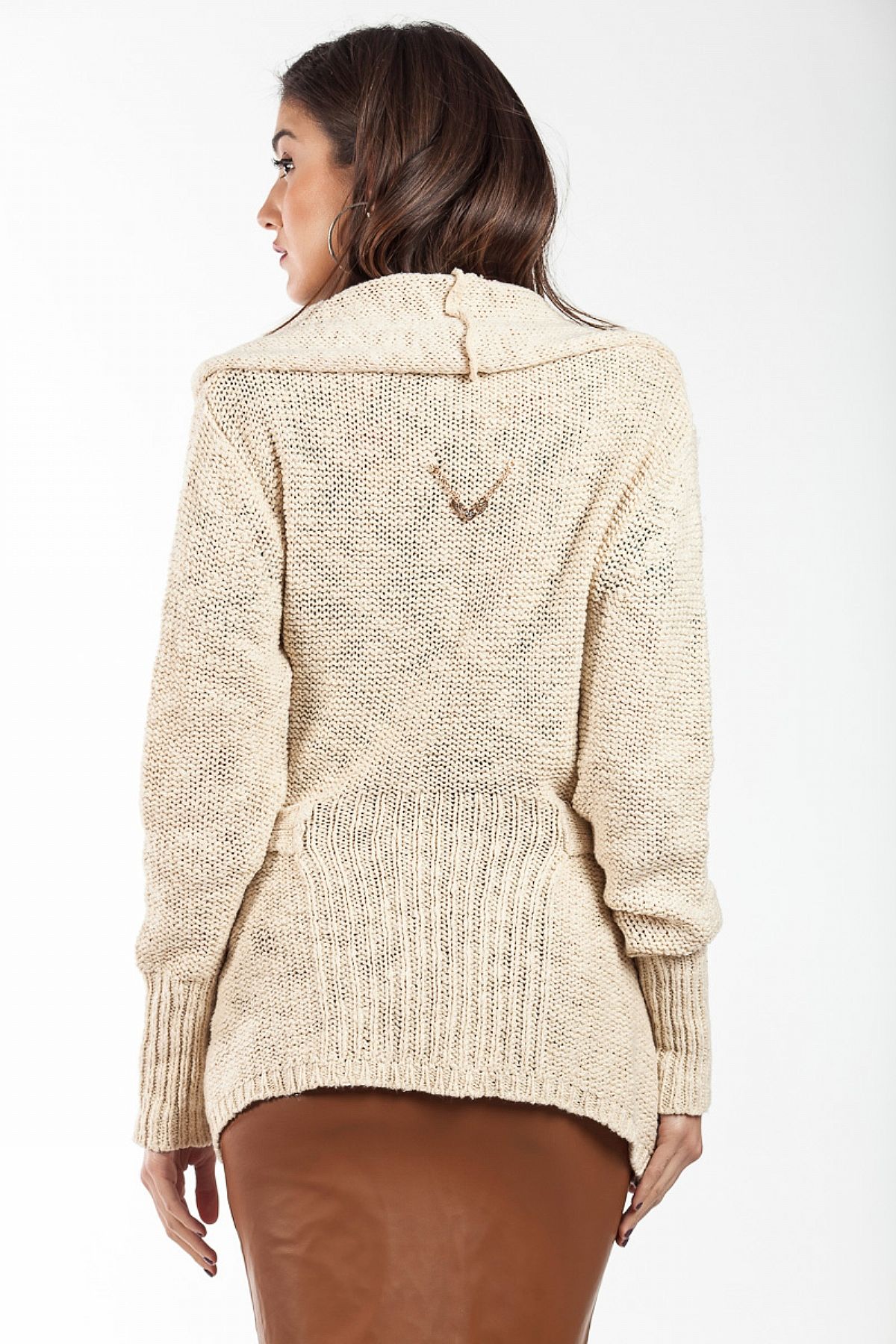Ζακέτα πλεκτή μπεζ με ζώνη ενσωματωμένη