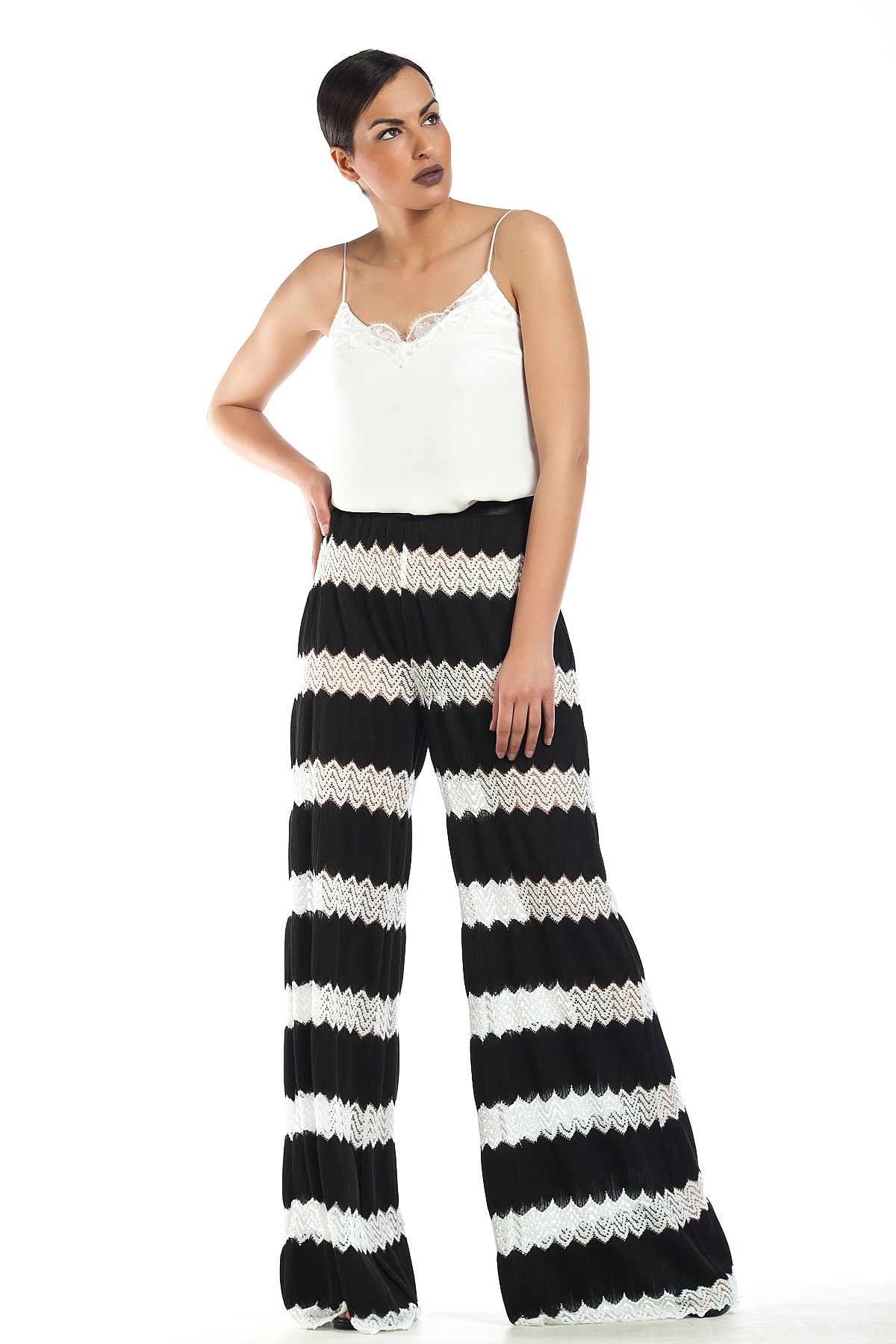 Παντελόνι ασπρόμαυρο δαντέλα