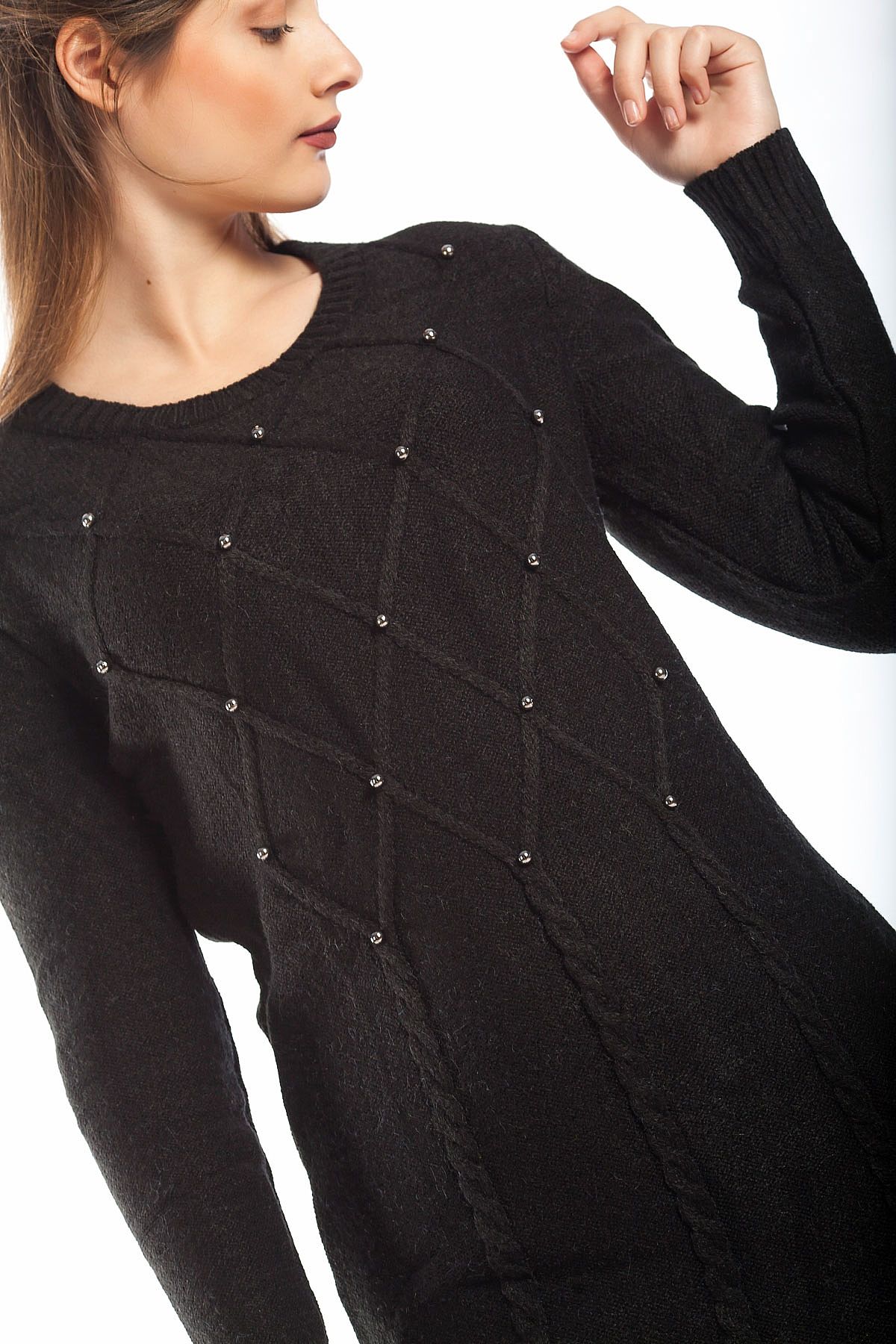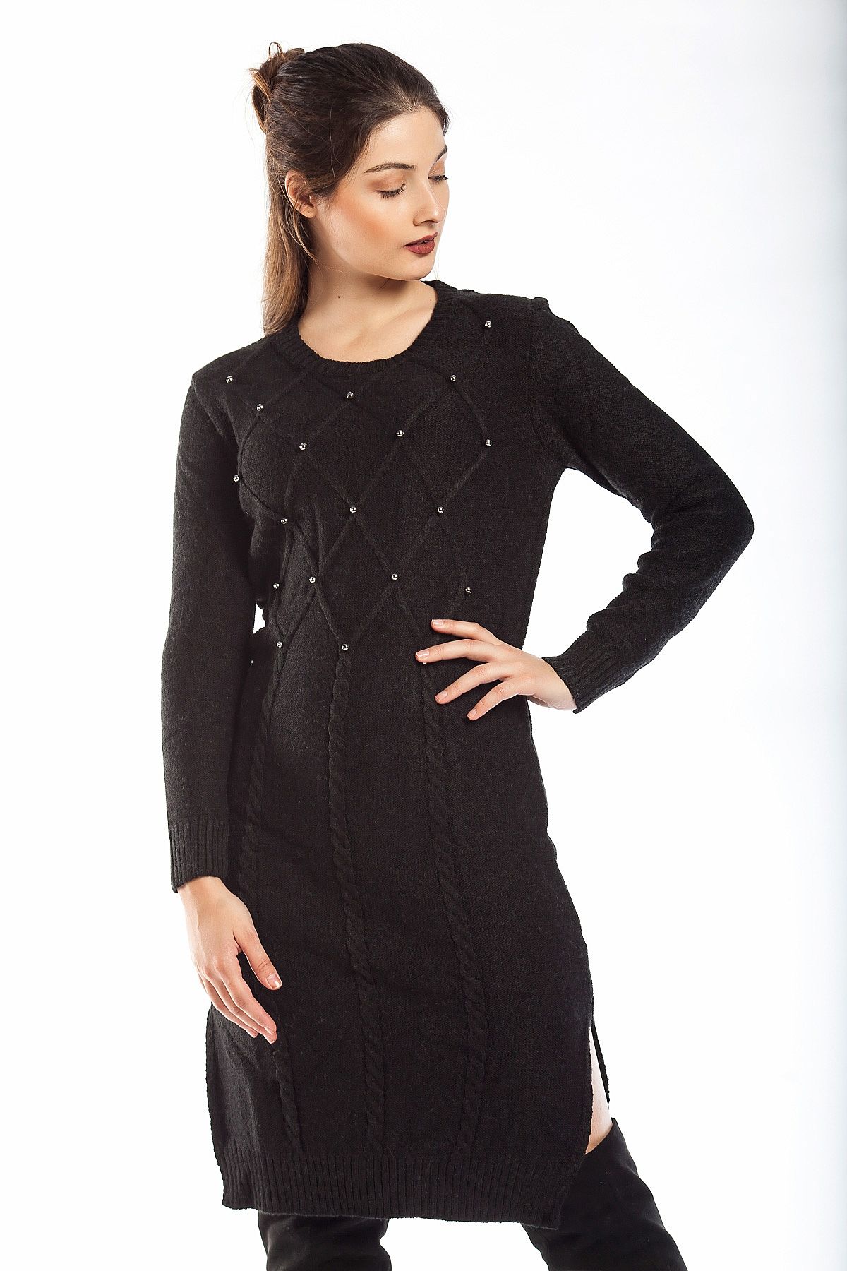 Φόρεμα πλεκτό μαύρο με πέρλες