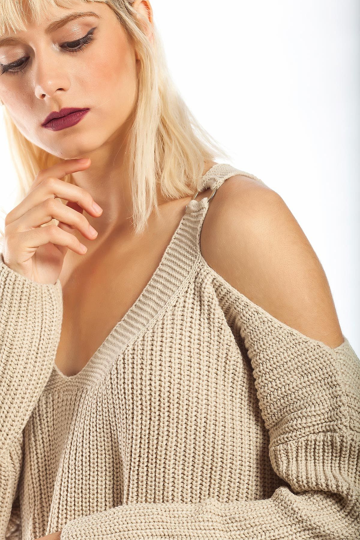 Πλεκτό μπεζ με κρίκους