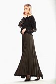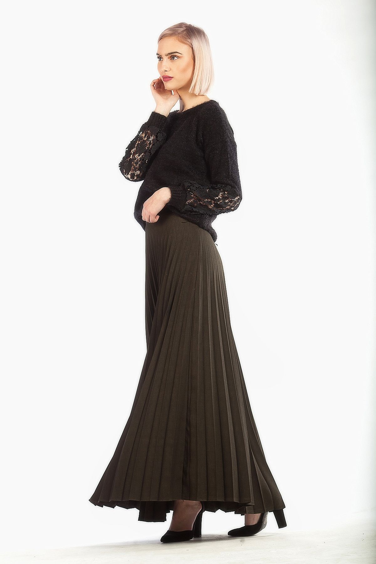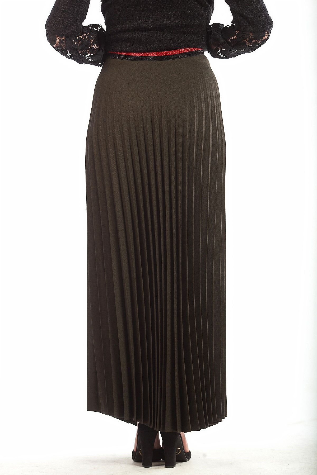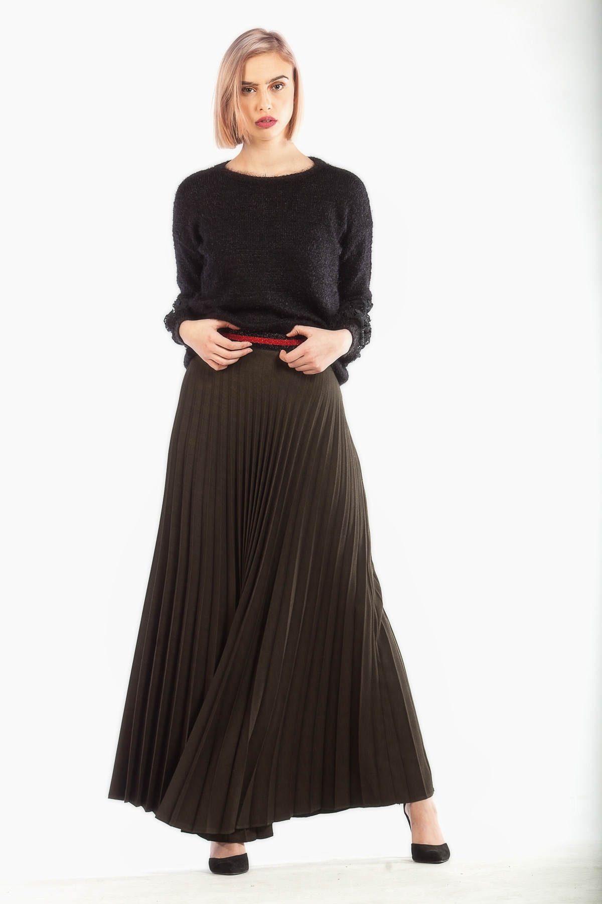 Φούστα πλισέ χακί με λάστιχο στην ζώνη