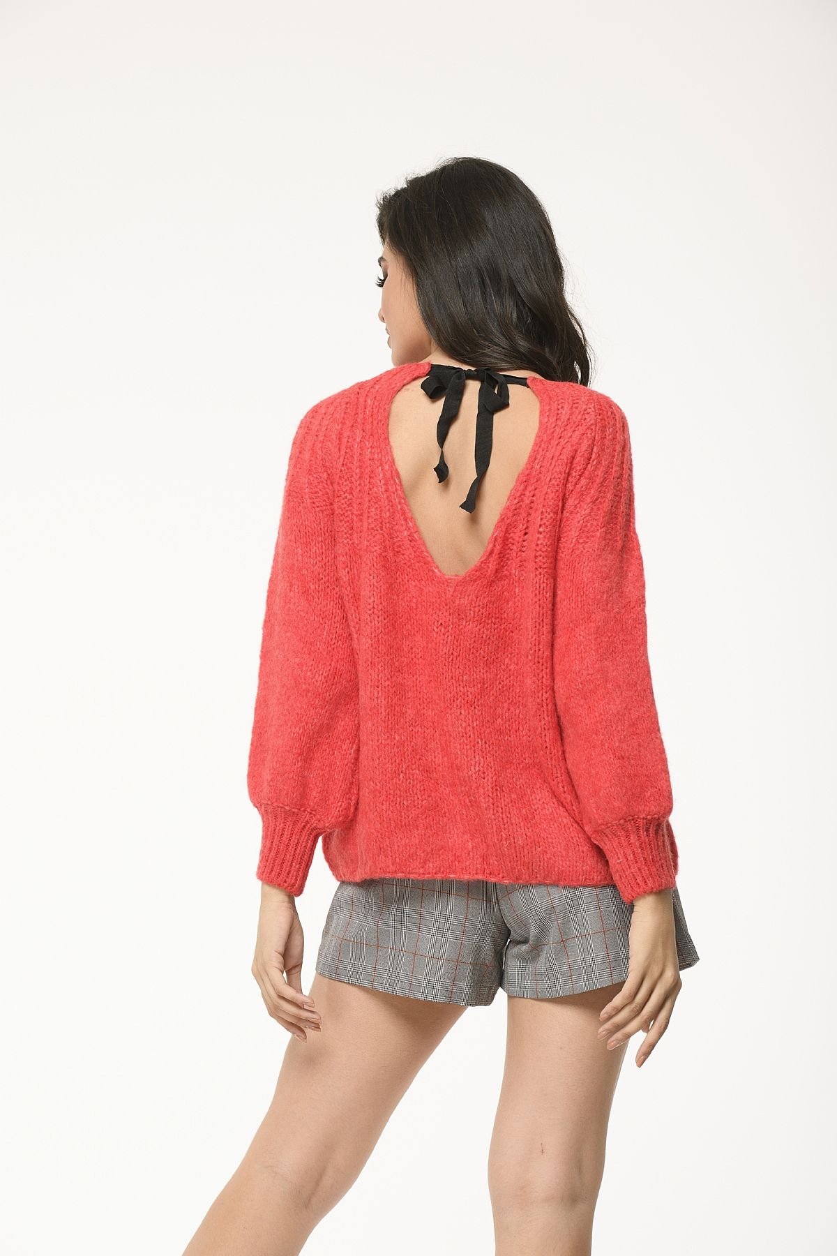 Πλεκτό κοραλί με κορδόνι στην πλάτη