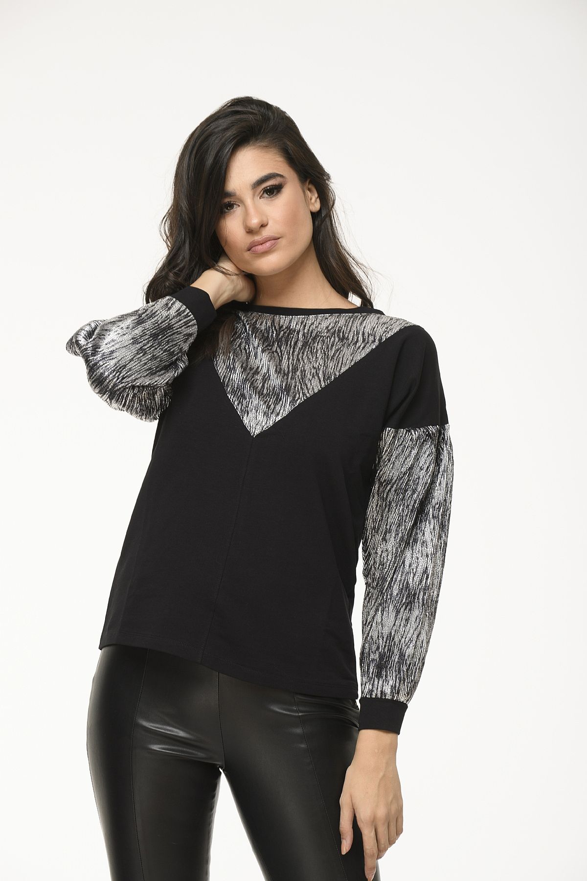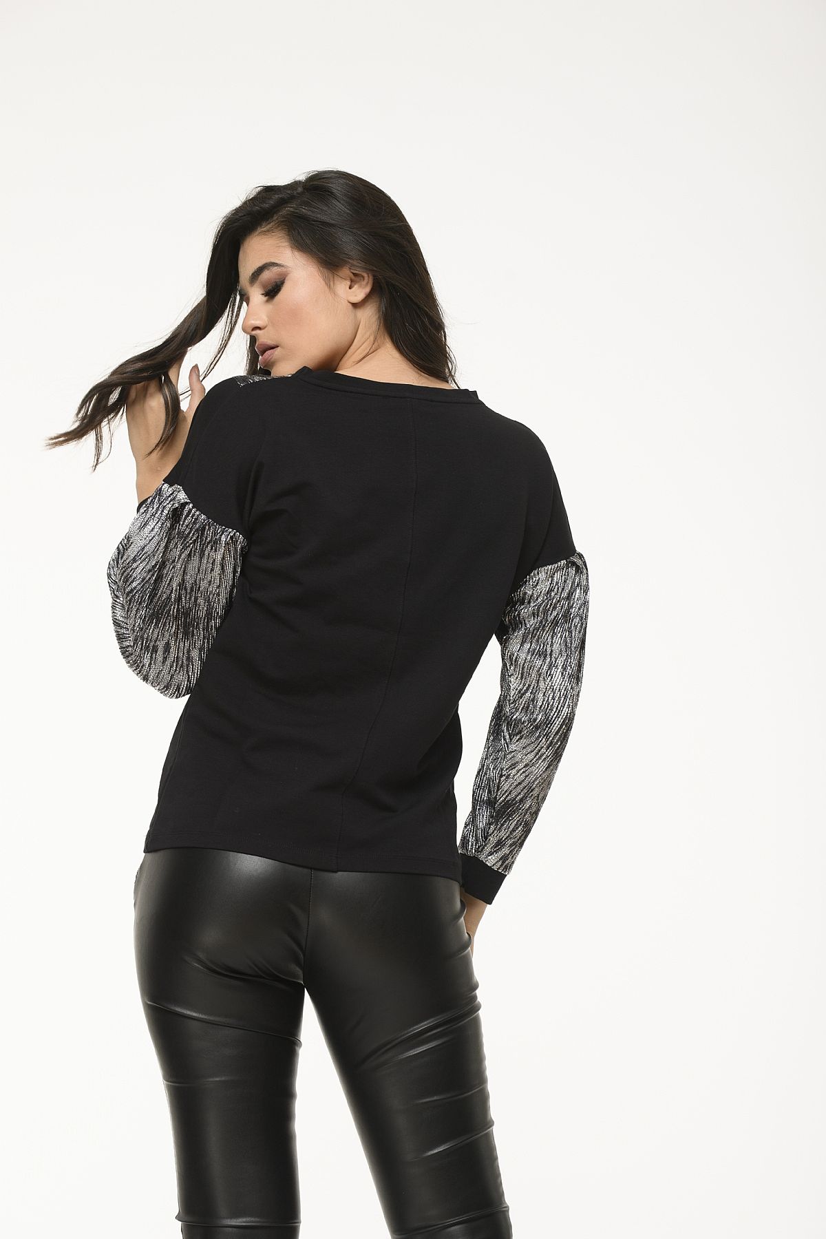 Μπλούζα μαύρη φούτερ με ασημί λεπτομέρειες