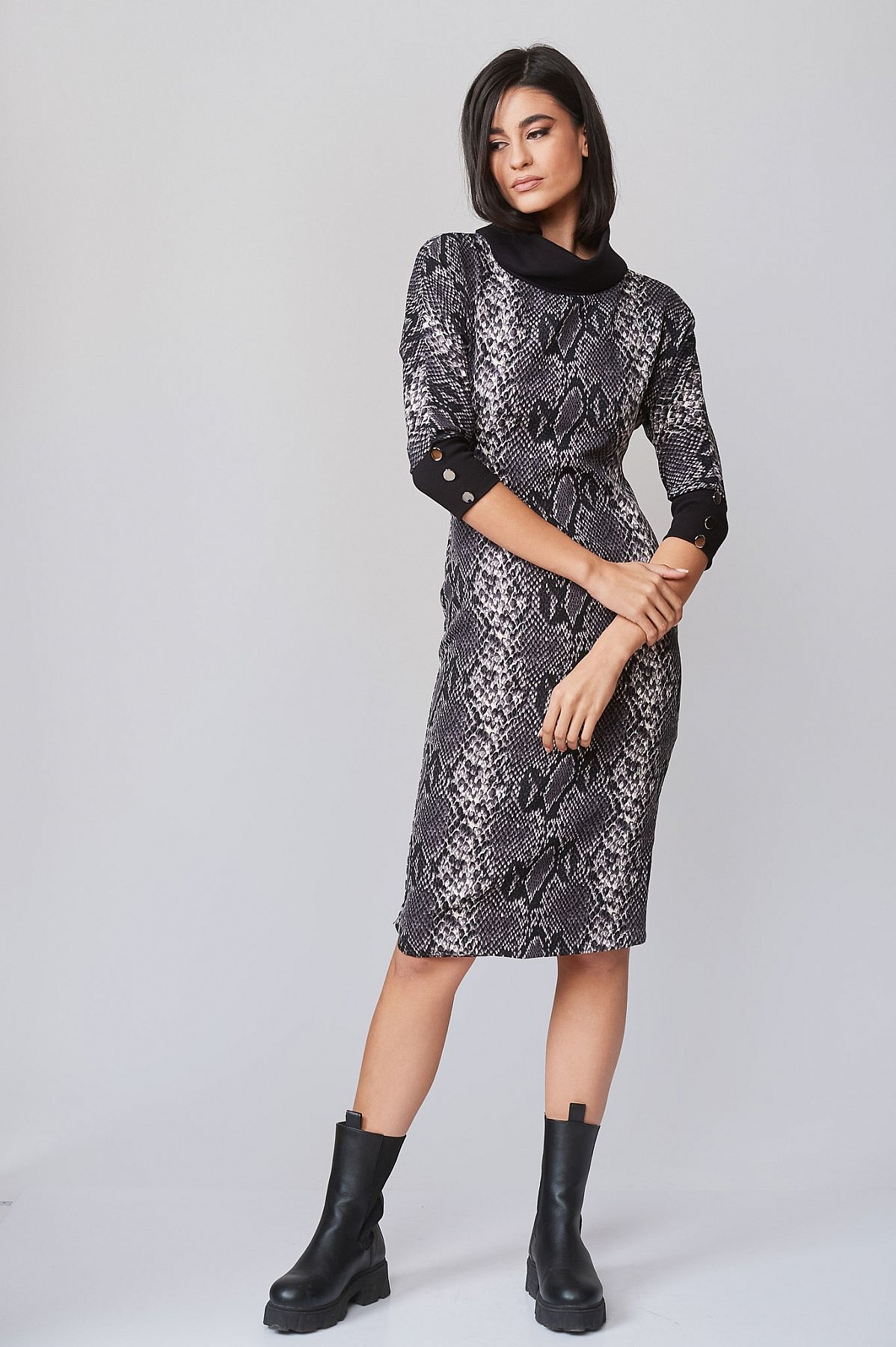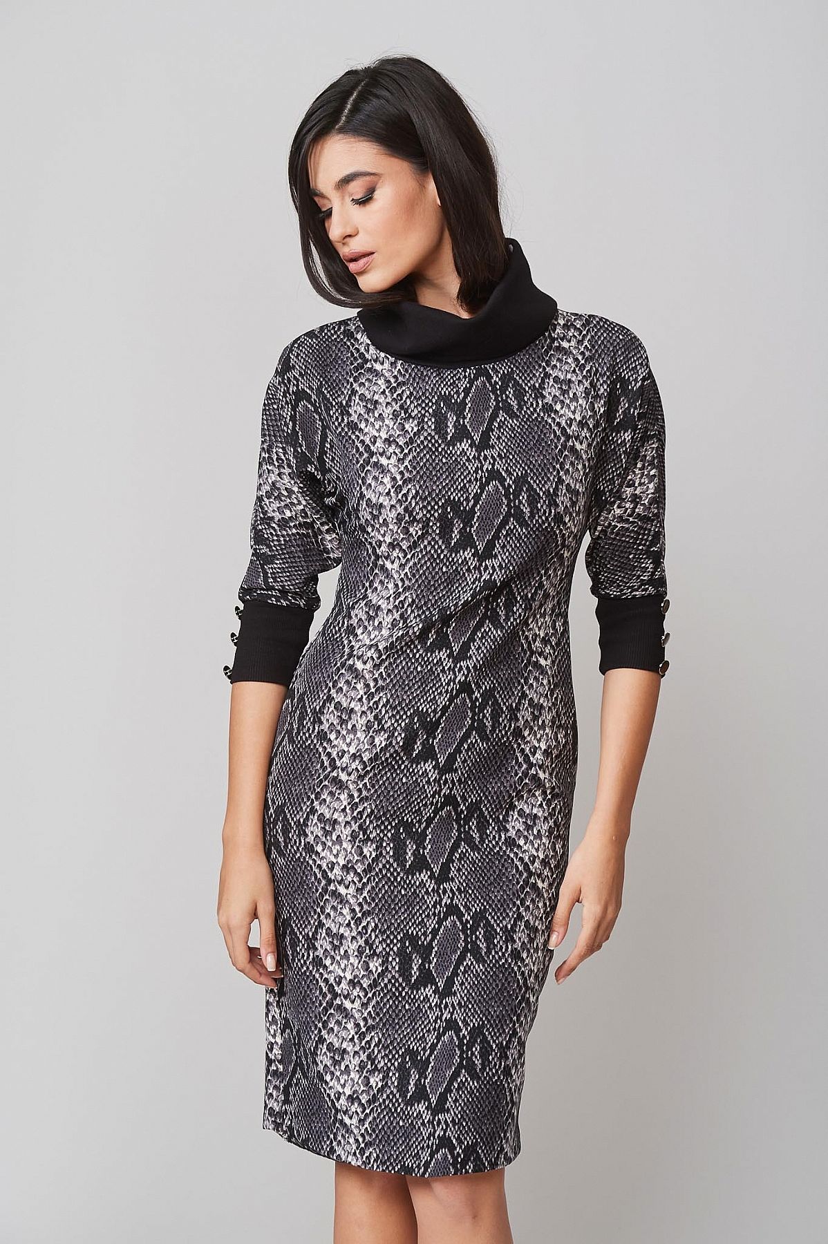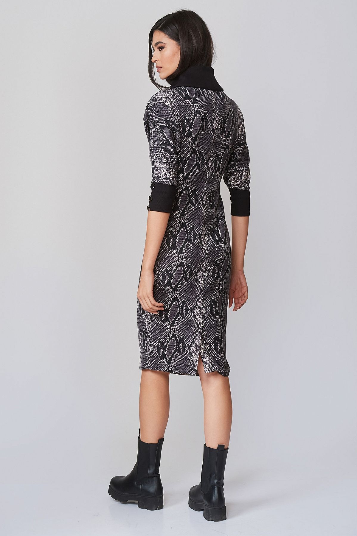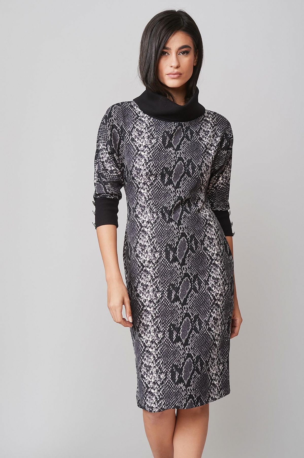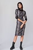 Φόρεμα Γκρι Pencil με Μοτίβο Φίδι