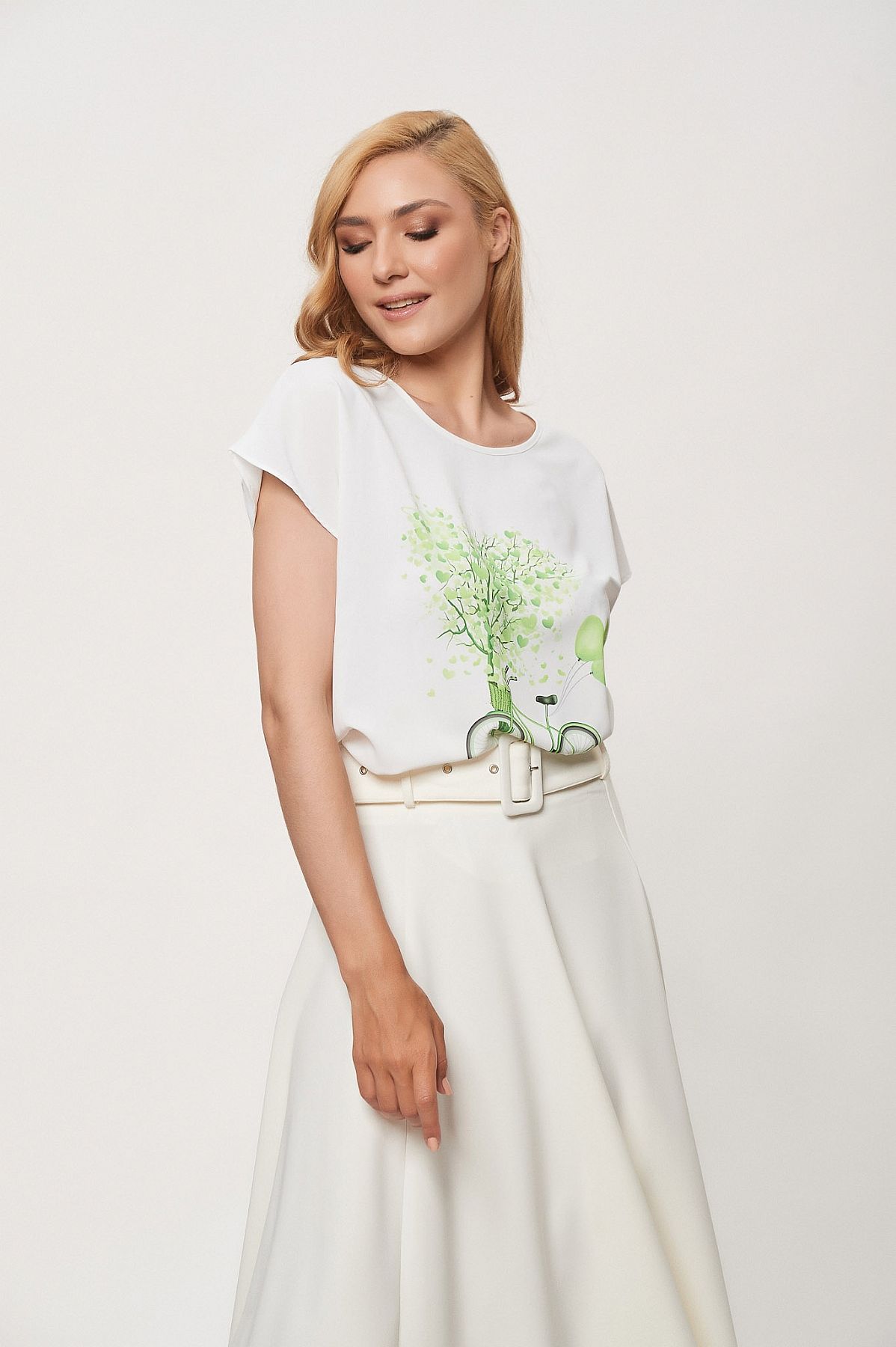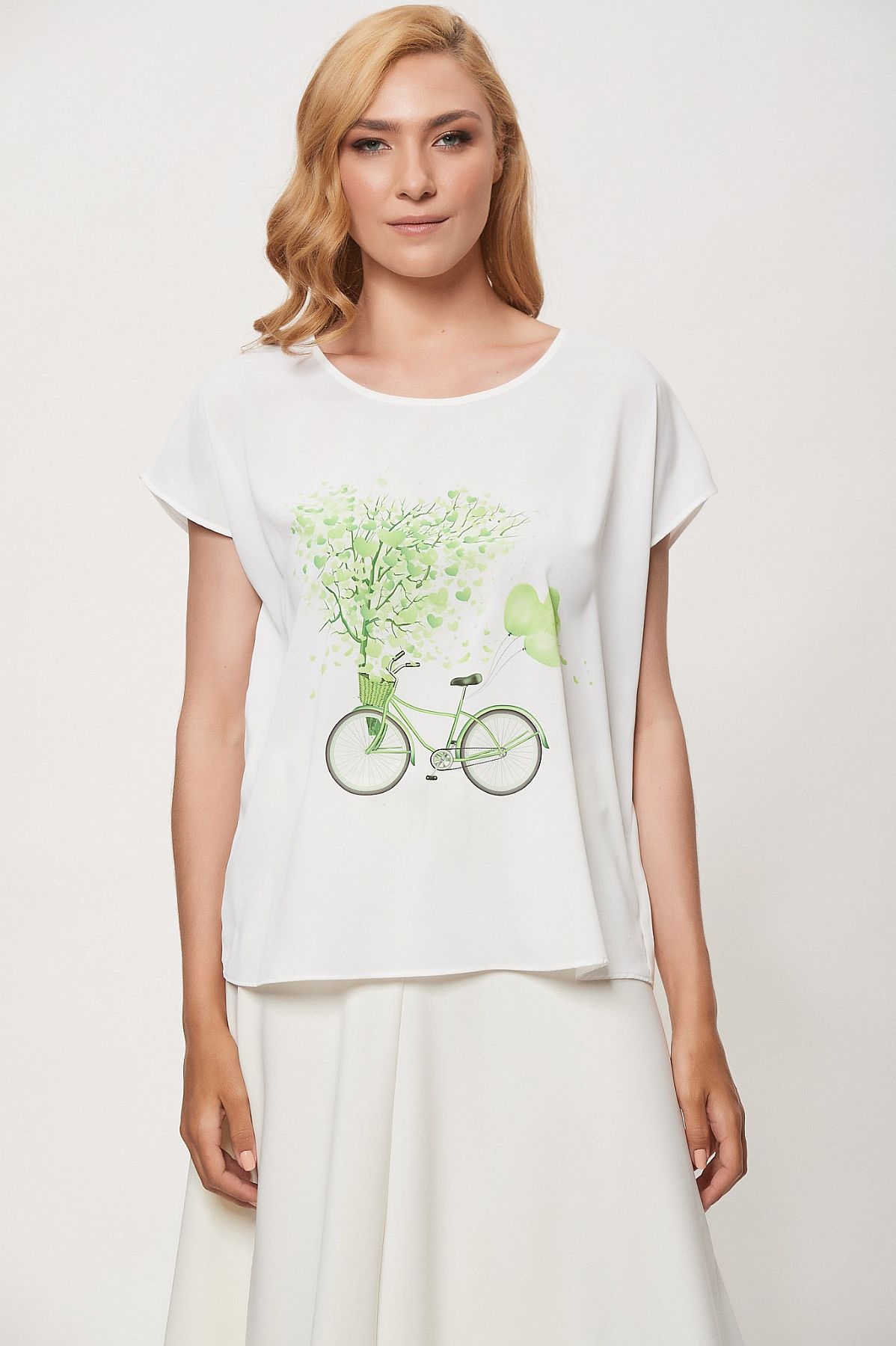 Λευκή μπλούζα με πράσινο σχέδιο