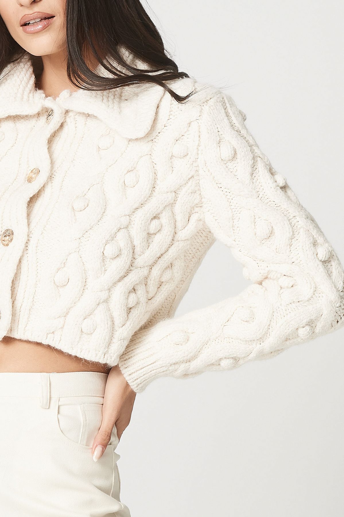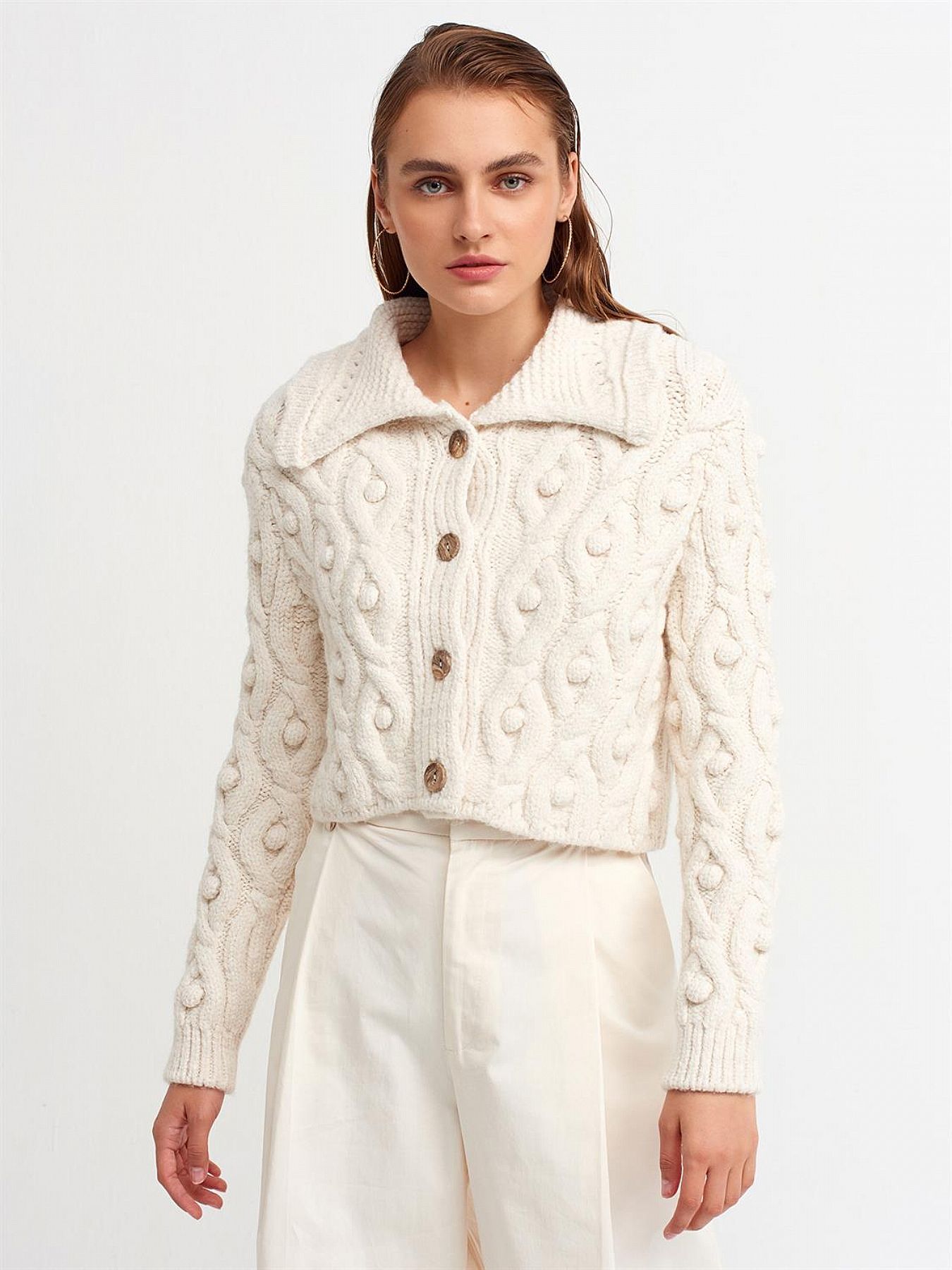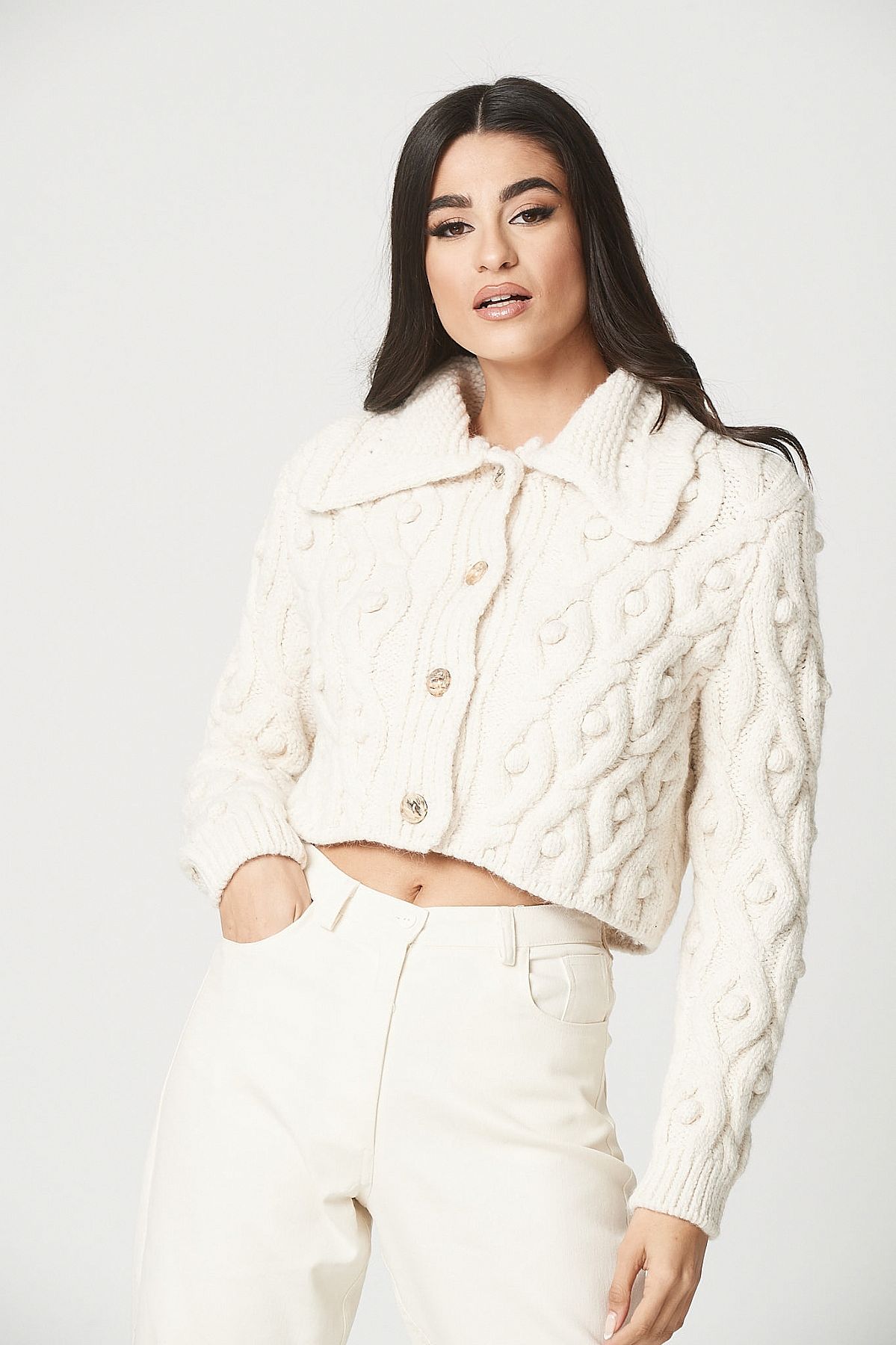 Ζακέτα εκρού με γιακά