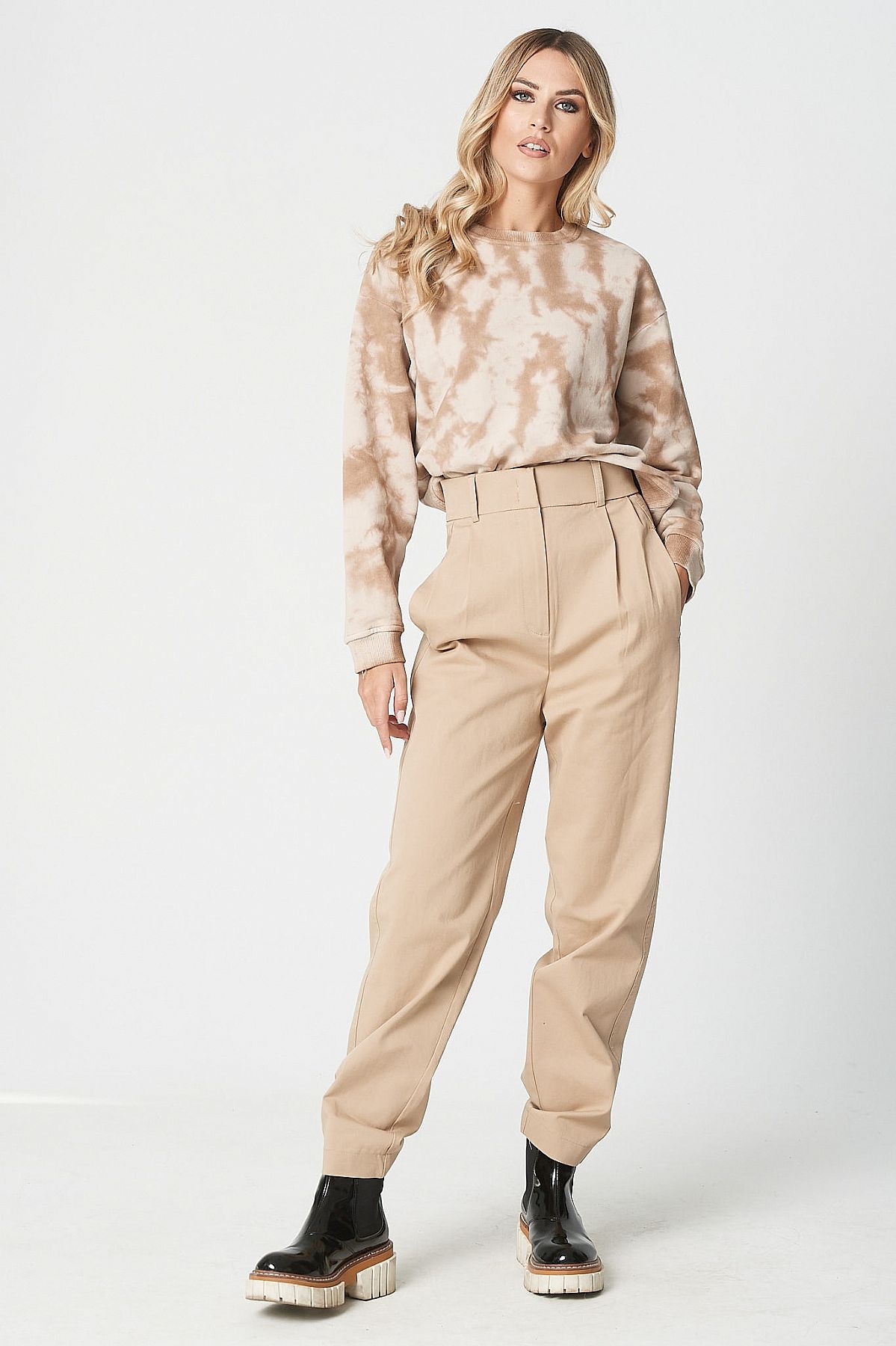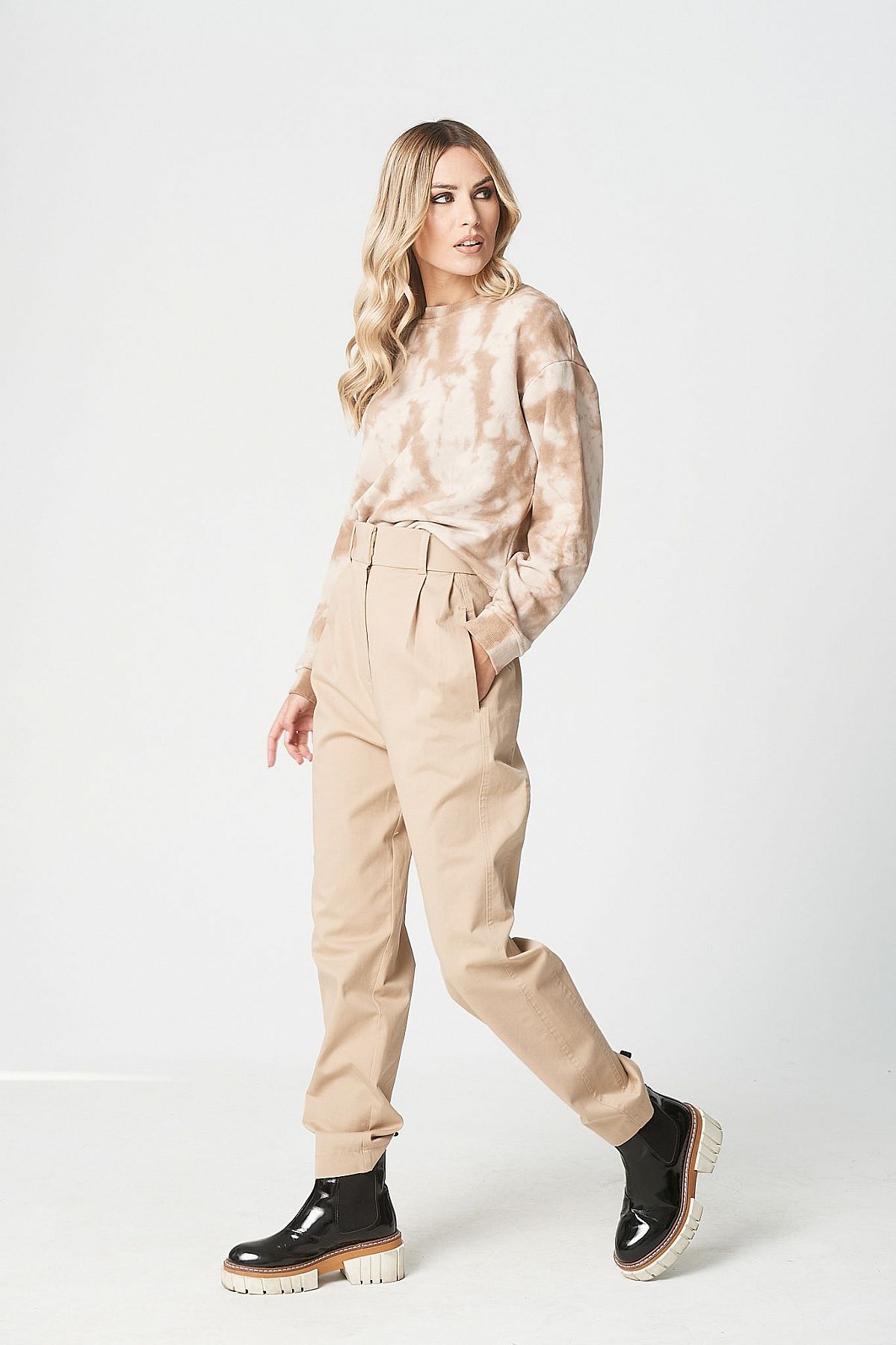 Μπλούζα μπεζ φούτερ με νερά καφέ