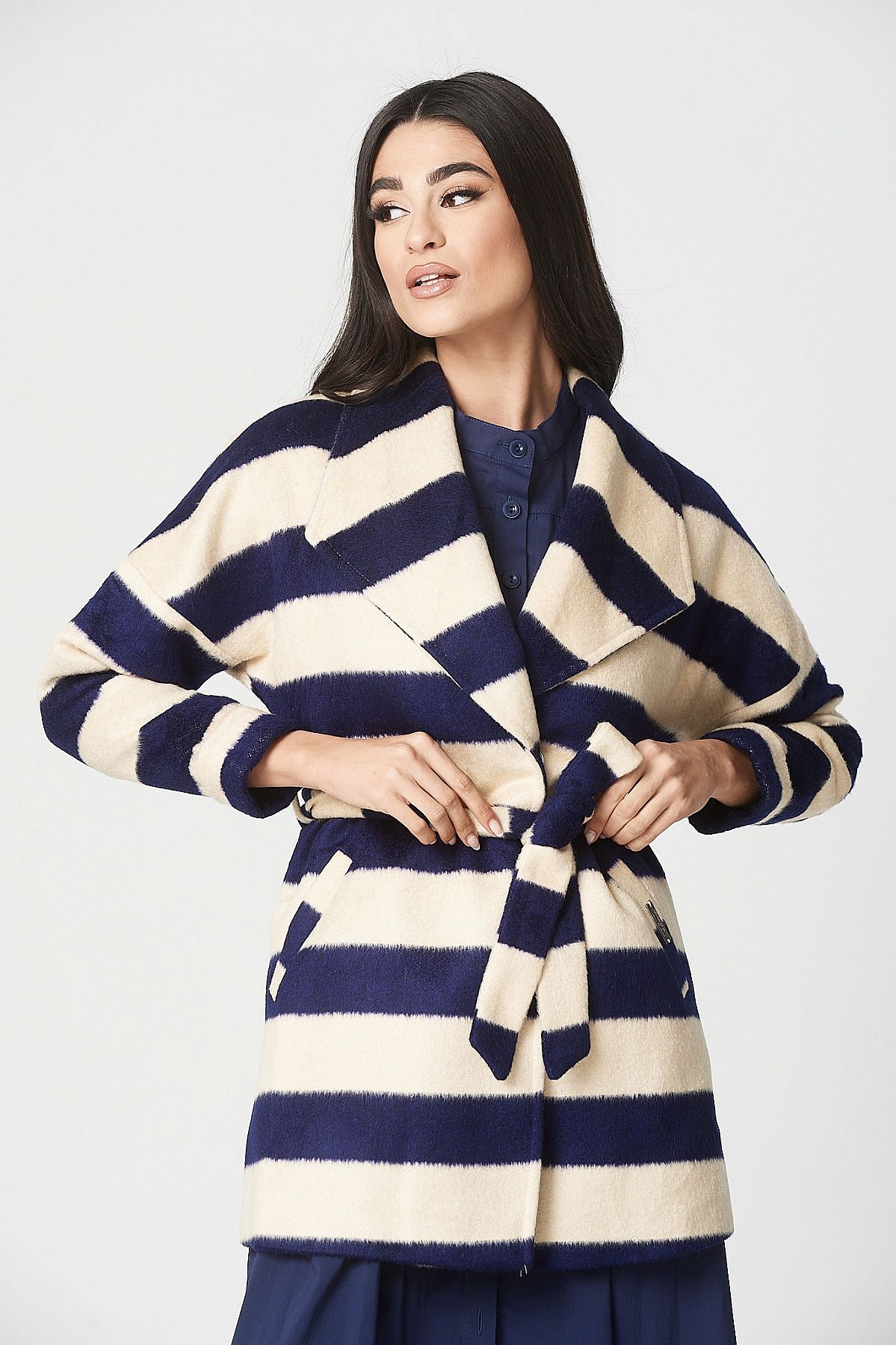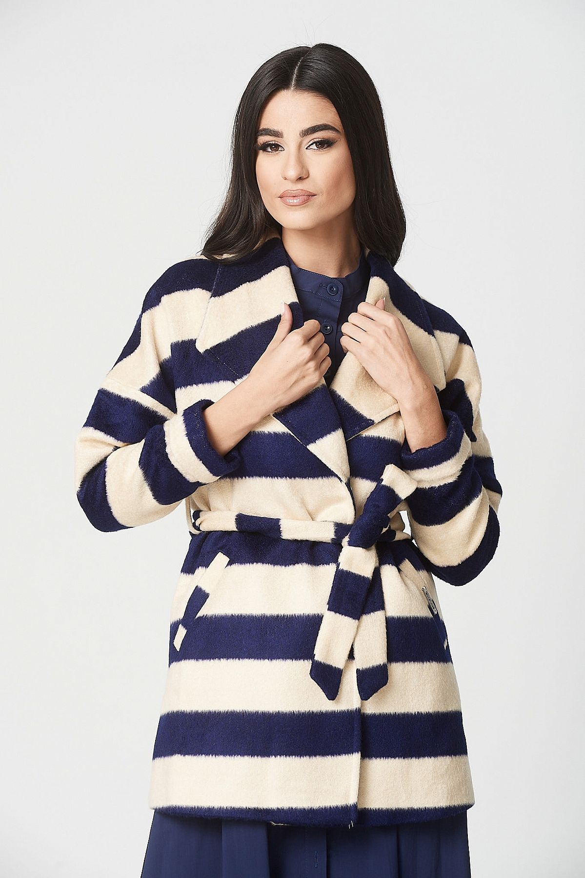 Παλτό Iris μπλε με εκρού ρίγες