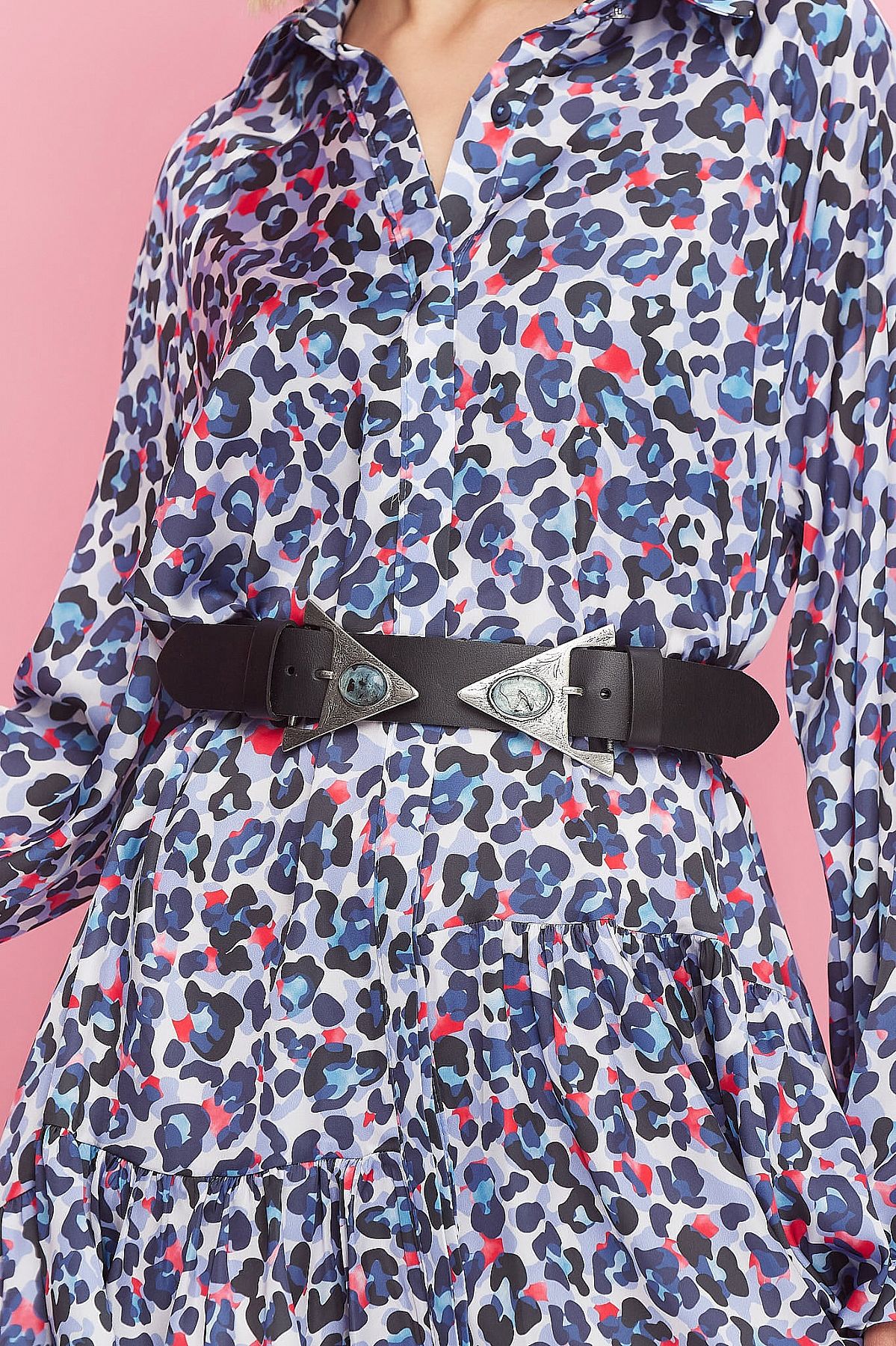 Ζώνη Jasmine Double Μαύρη με Μπλε Πετράδι