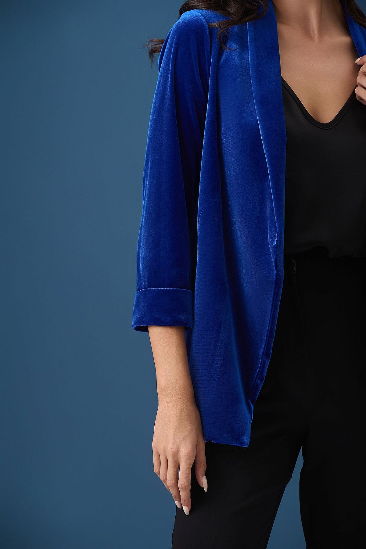 Σακάκι Freya Μπλε Βελουτέ
