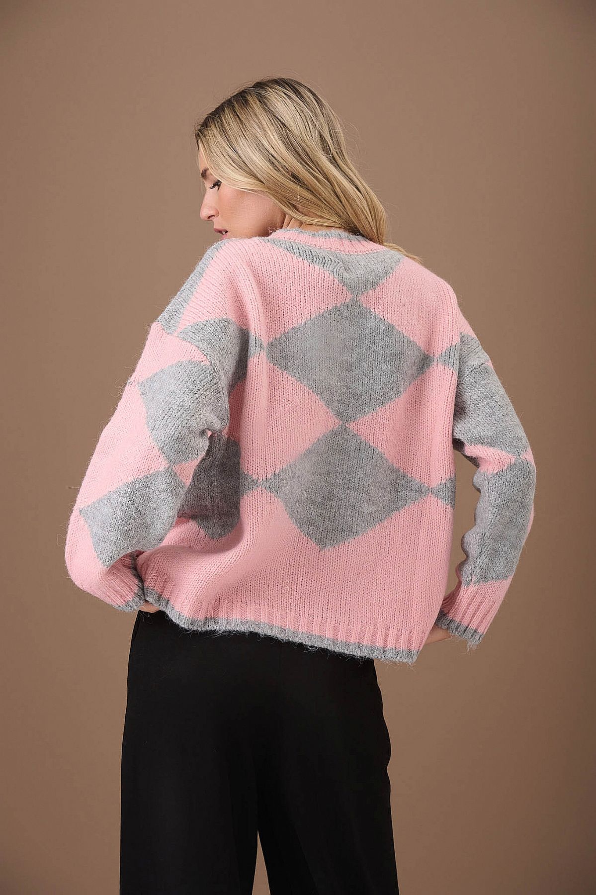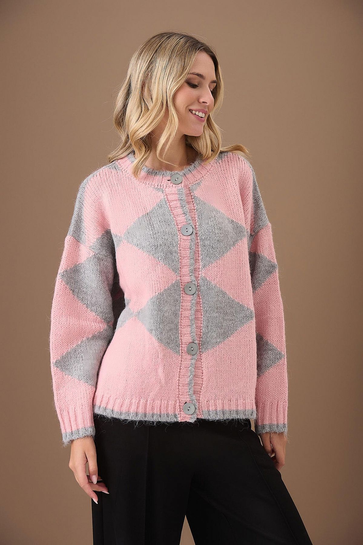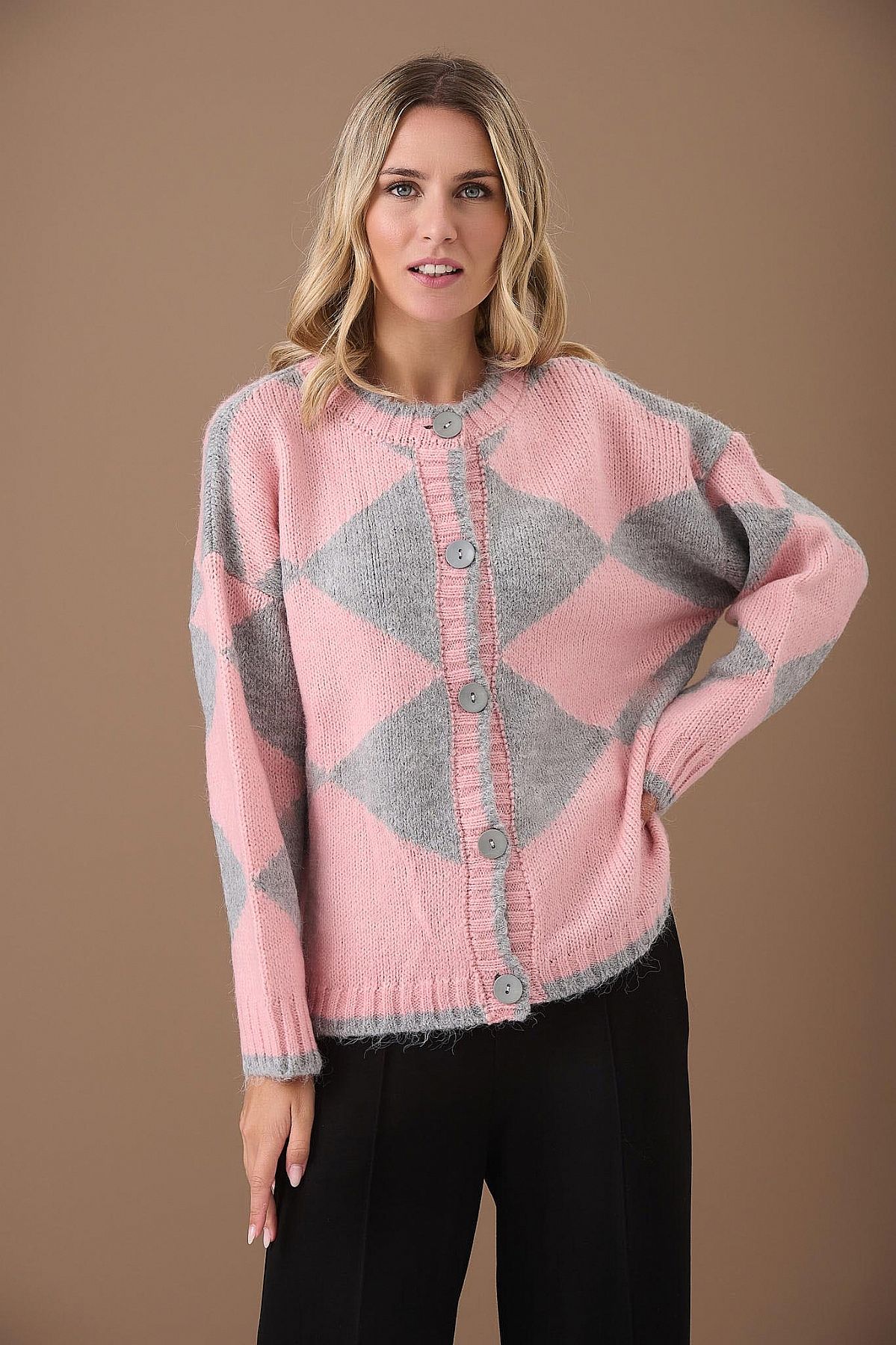Ζακέτα Evie Πλεκτή Ροζ με Γκρι