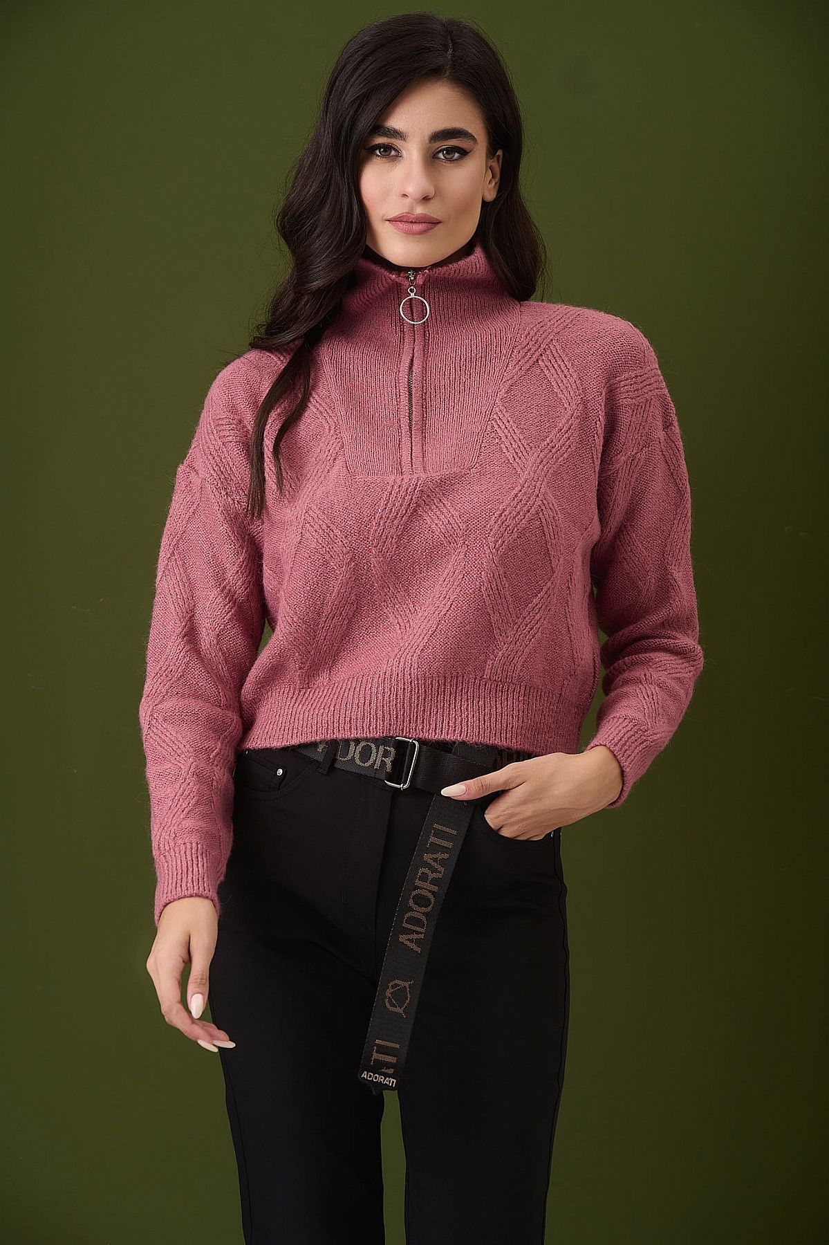 Μπλούζα Sasha Πλεκτή Ροζ Crop
