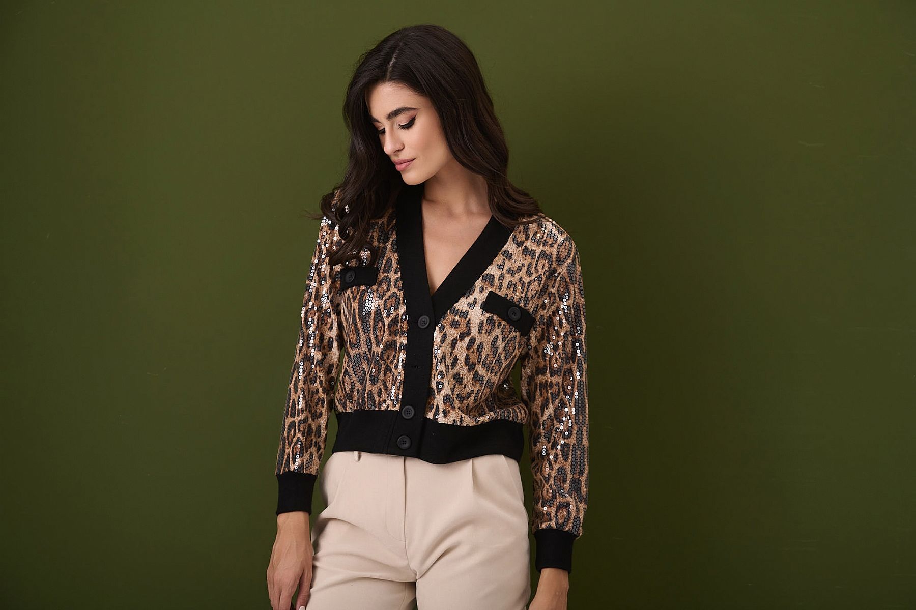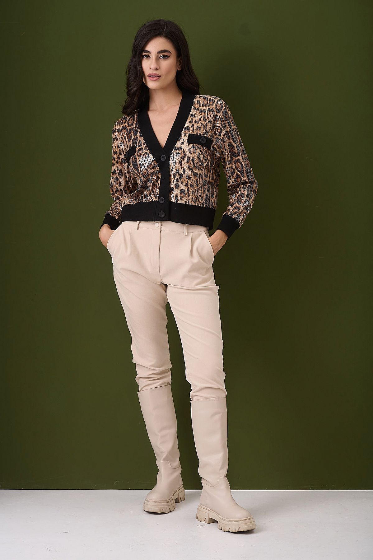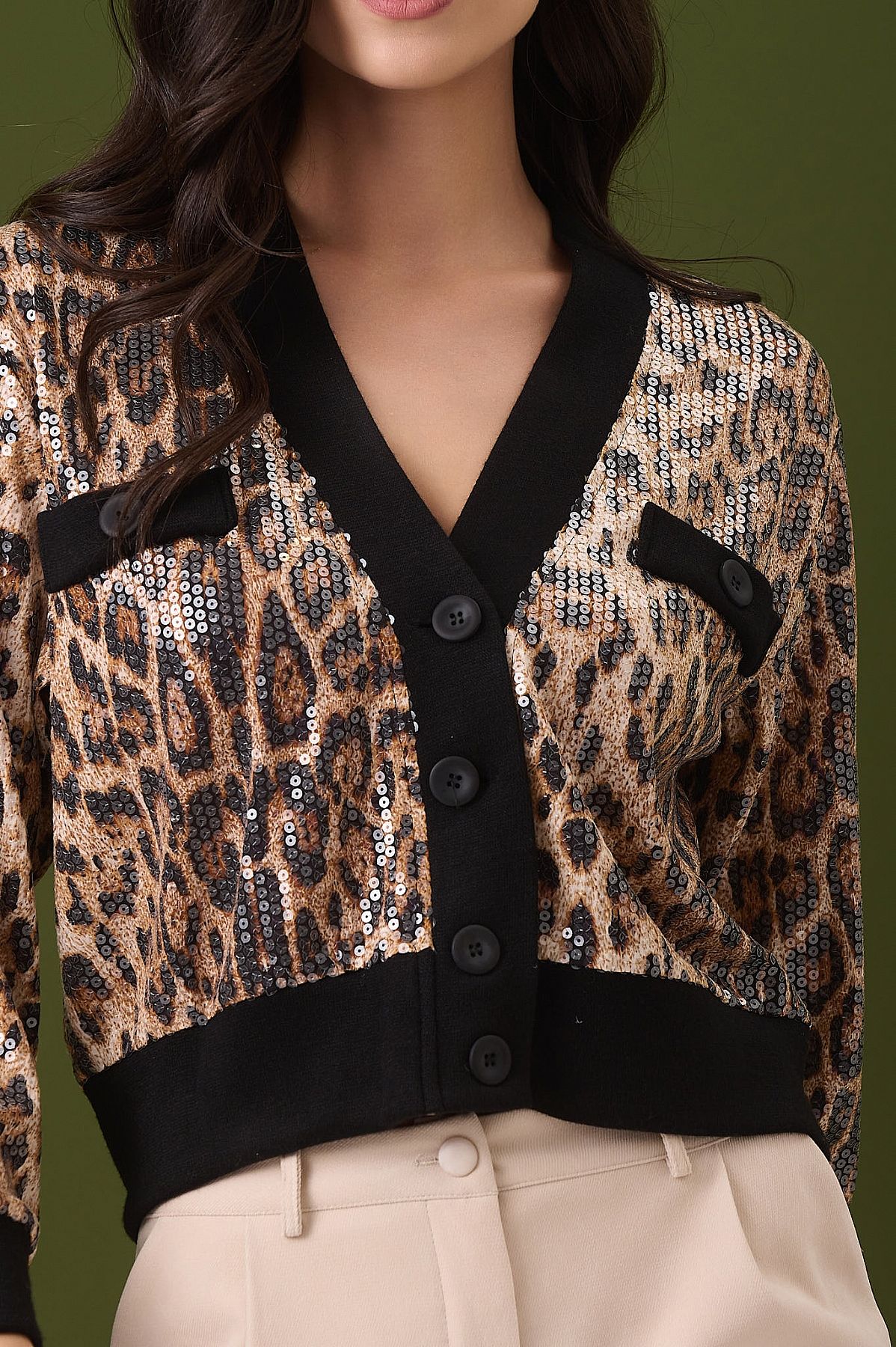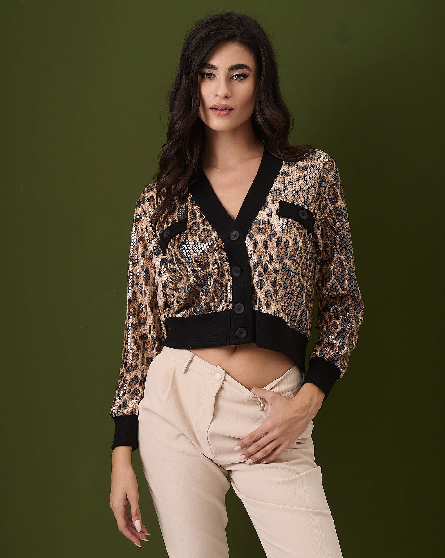 Ζακέτα Jenna Leopard Crop με Παγιέτα