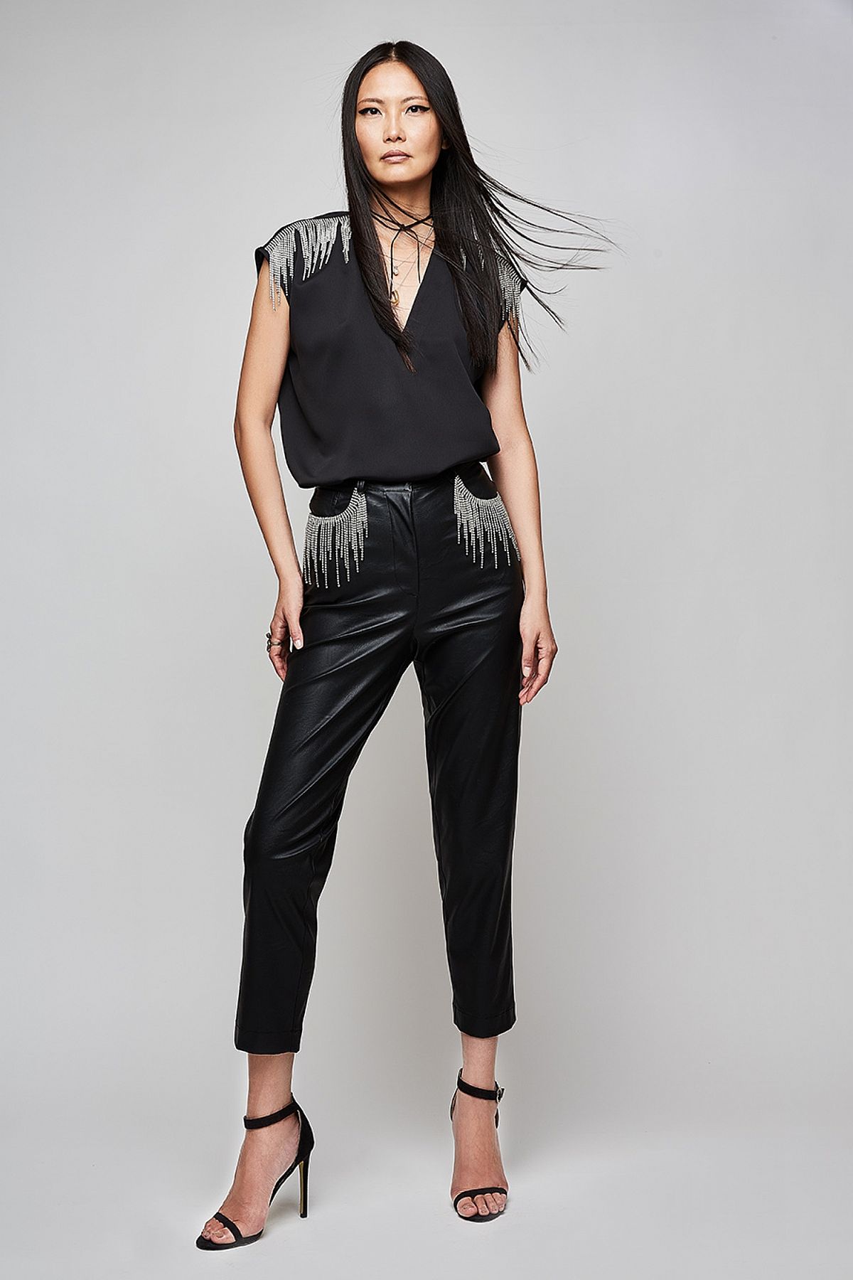 Παντελόνι Hailey Μαύρο με Στρας