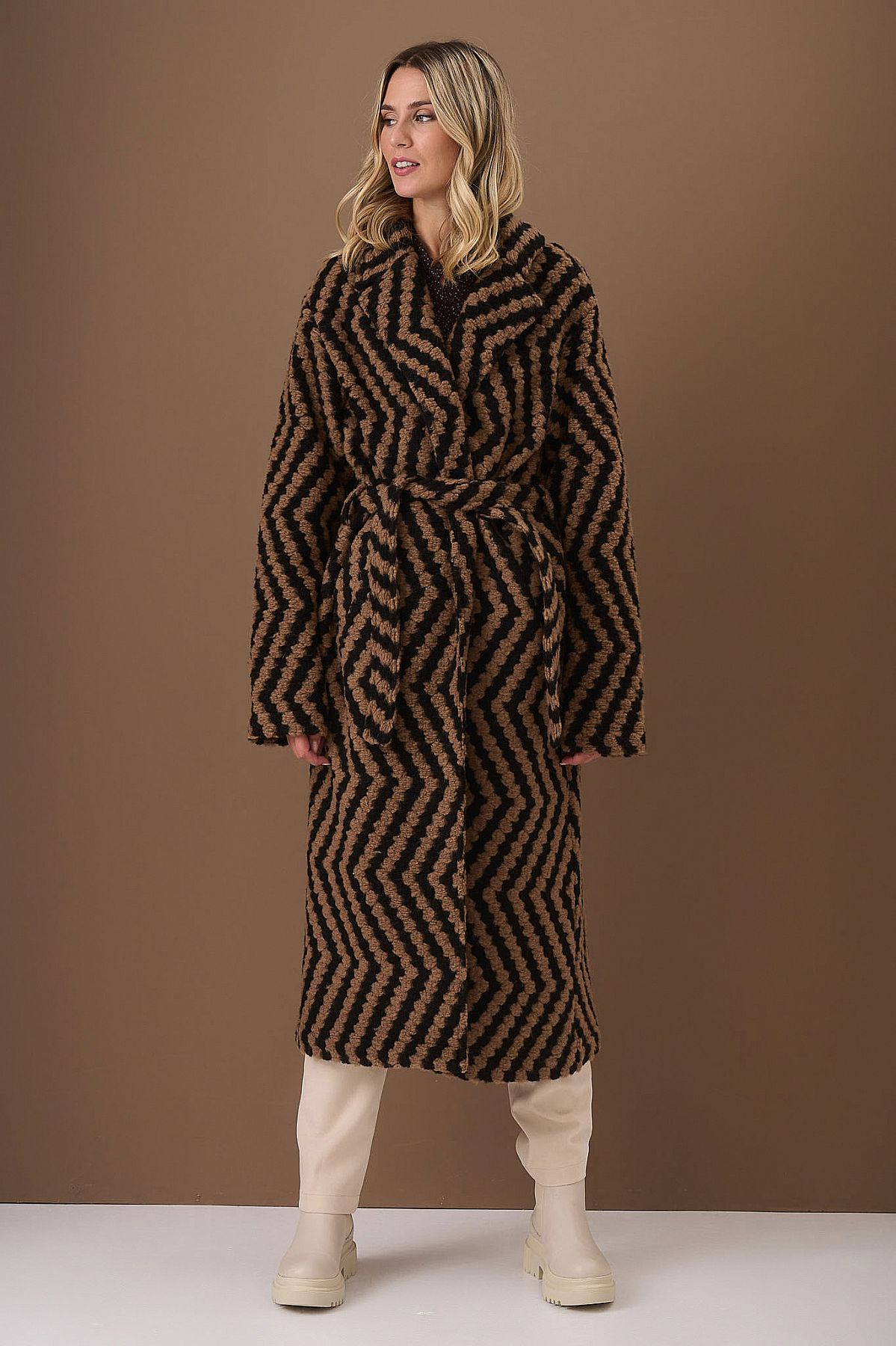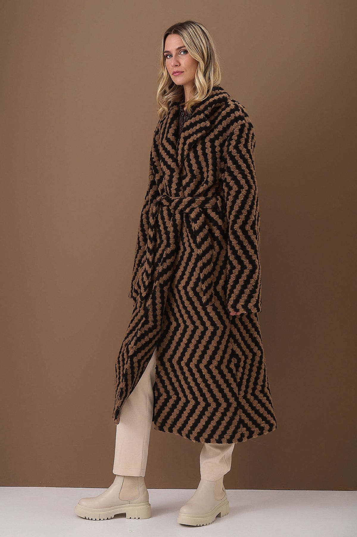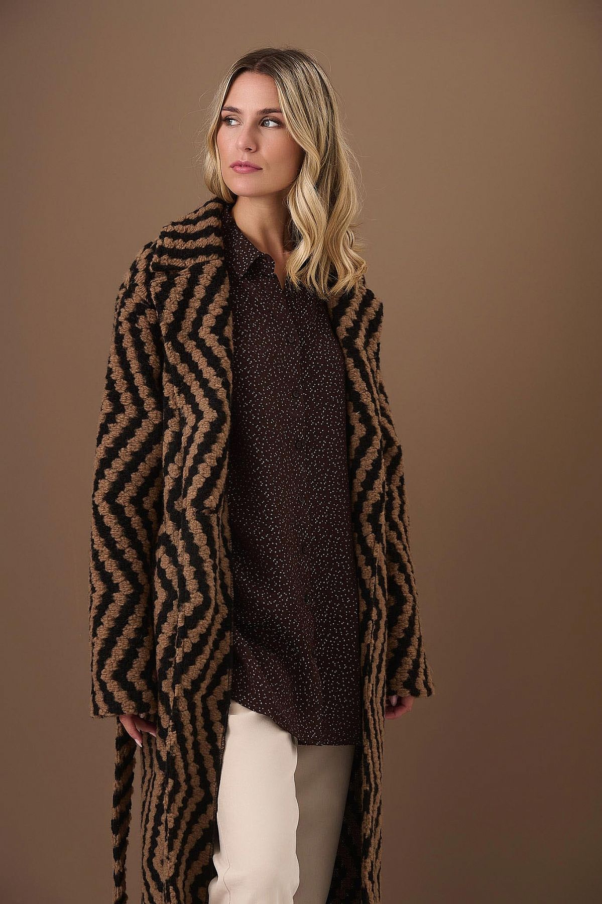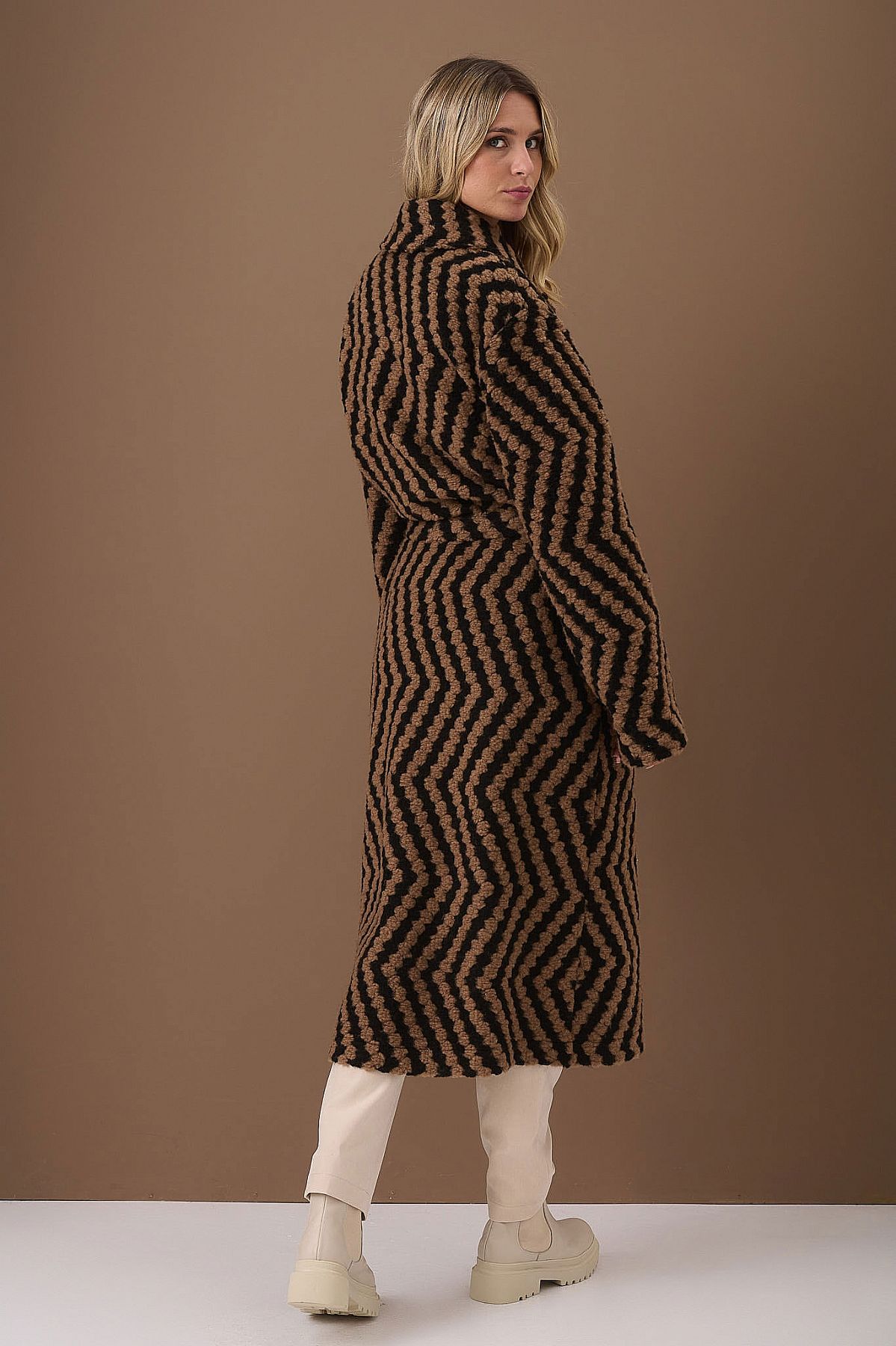Παλτό Anthea Καφέ Ριγέ με Πέτο Γιακά