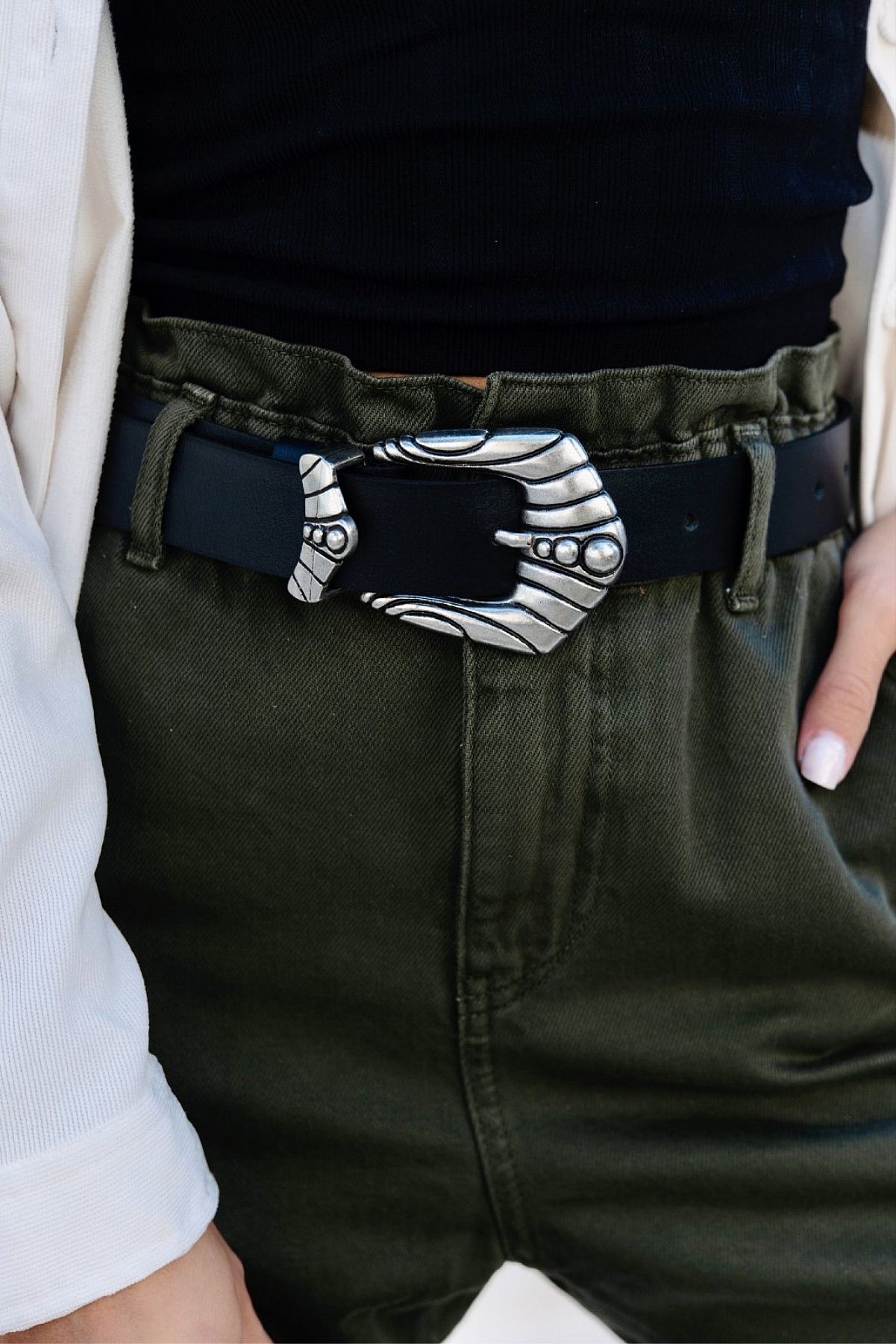 Ζώνη Piera Μαύρη με Ασημί Τοκά