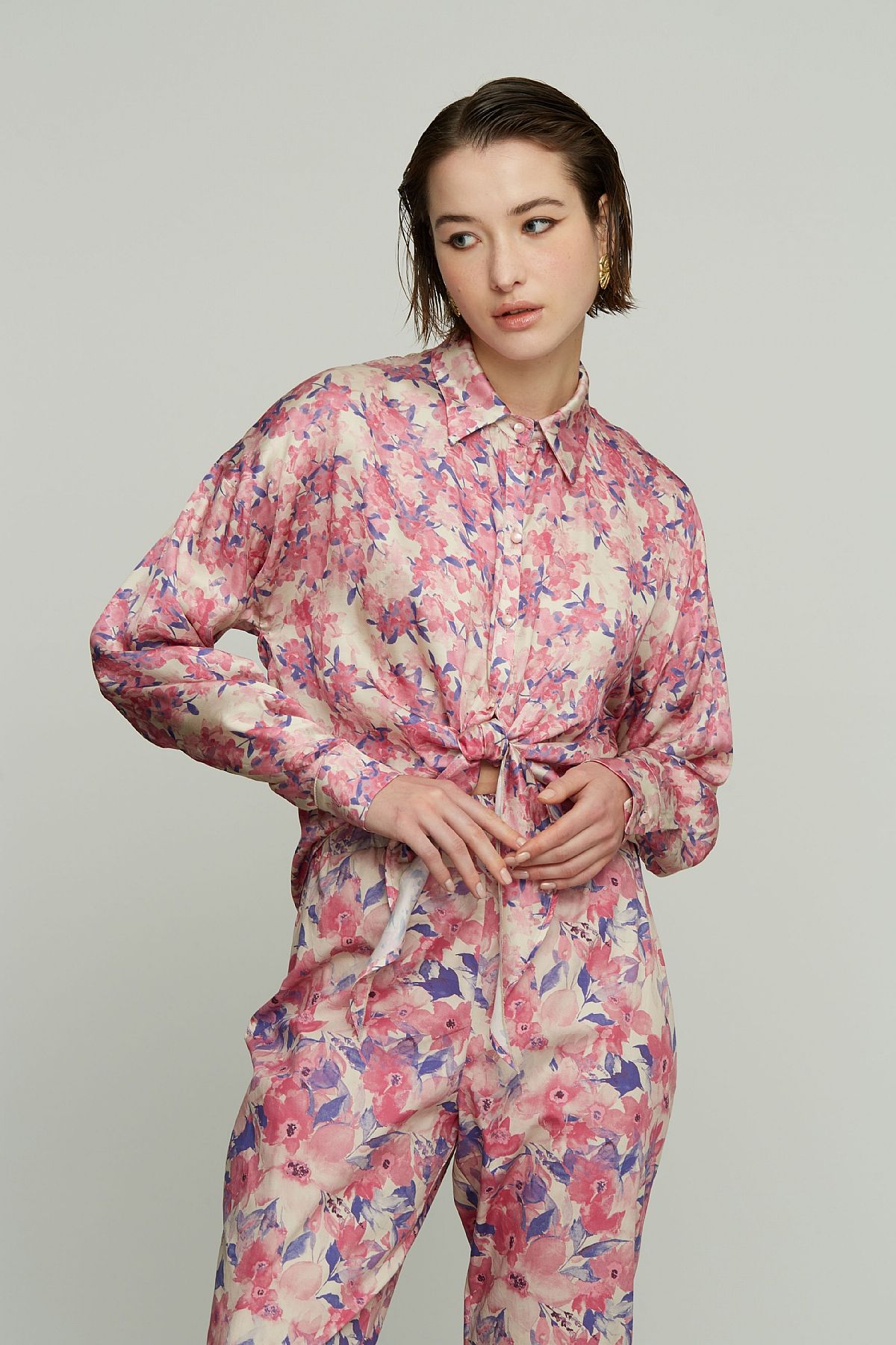 - πουκάμισο floral με δέσιμο στο κάτω μέρος