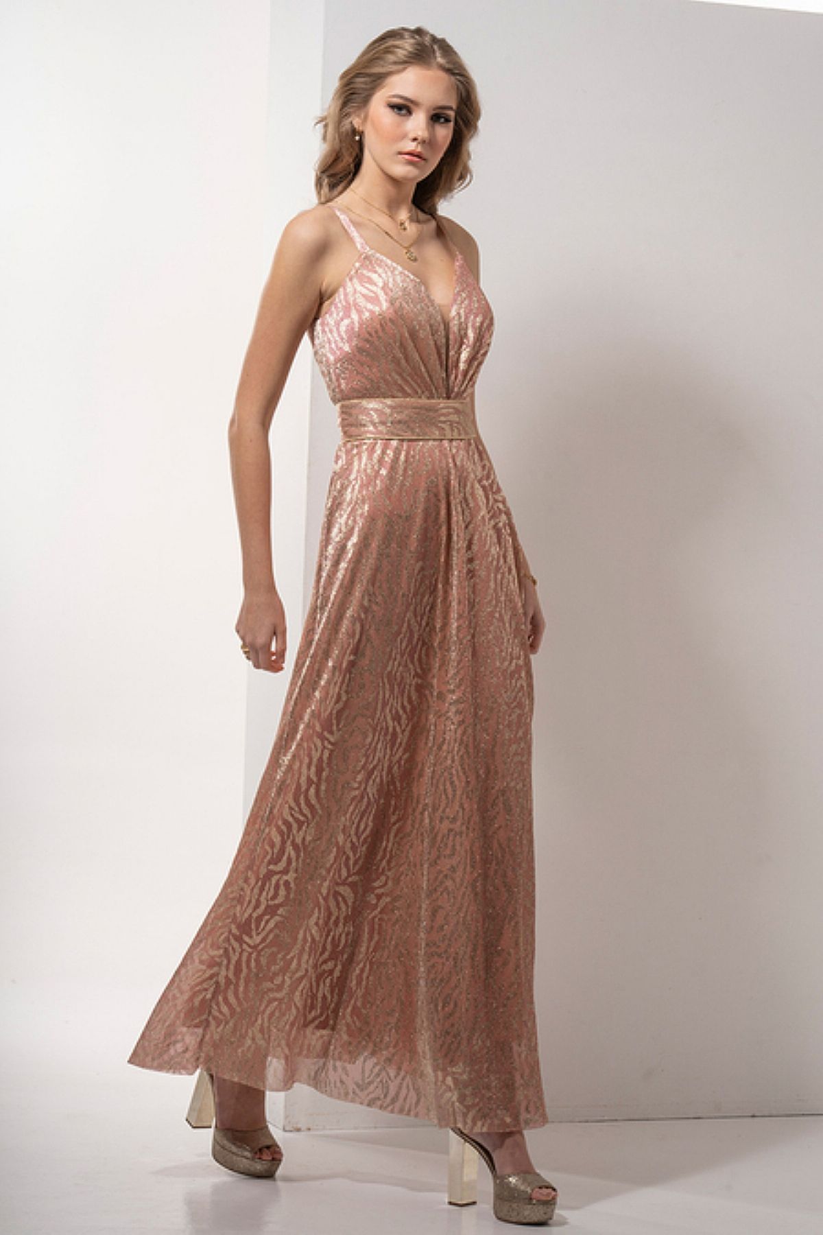 - φόρεμα σομόν maxi με χρυσές λεπτομέρειες