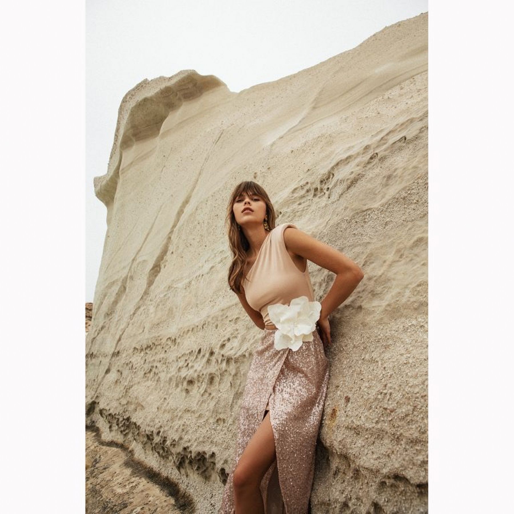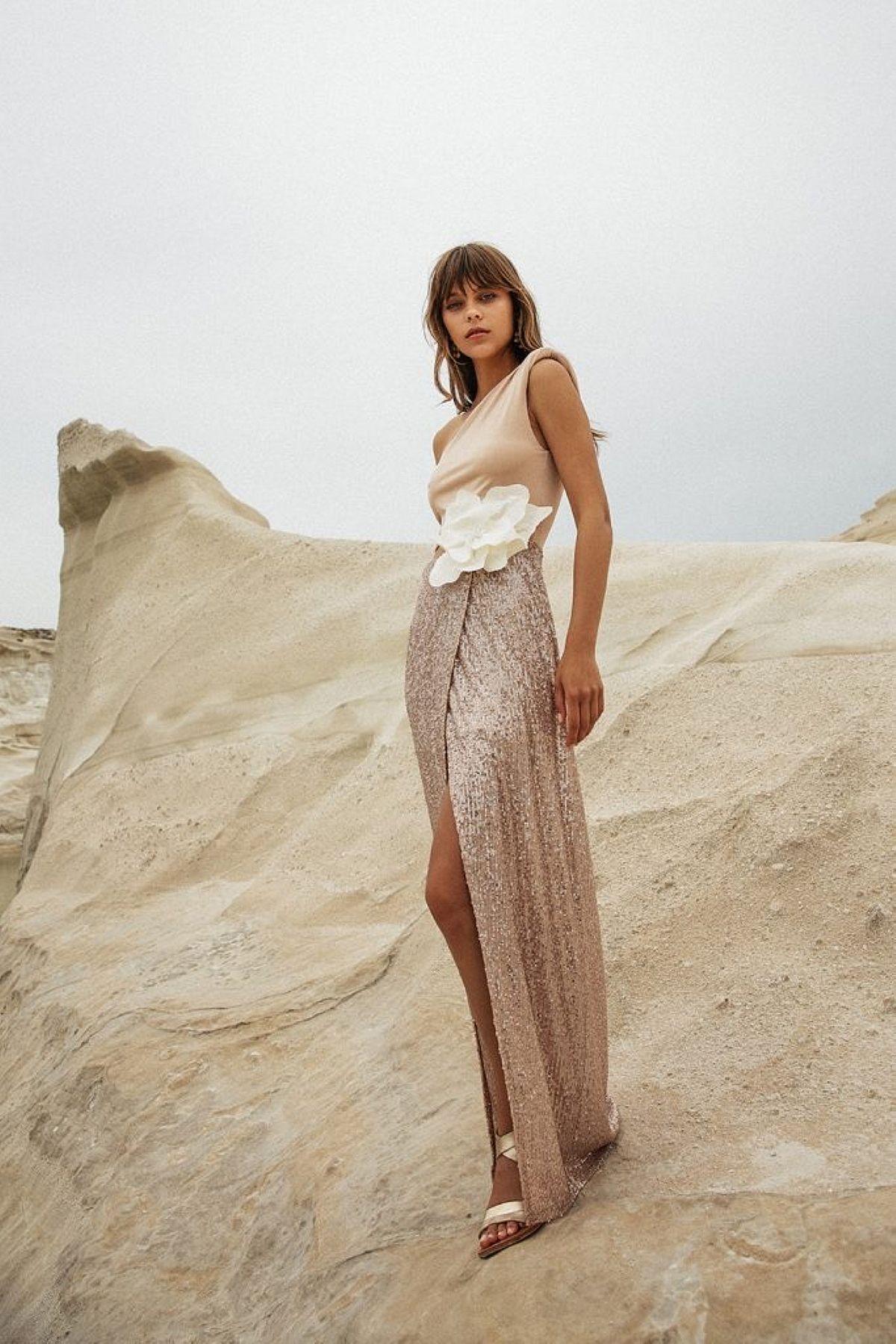 - φορεμα εκρού με χρυσή παγιέτα maxi