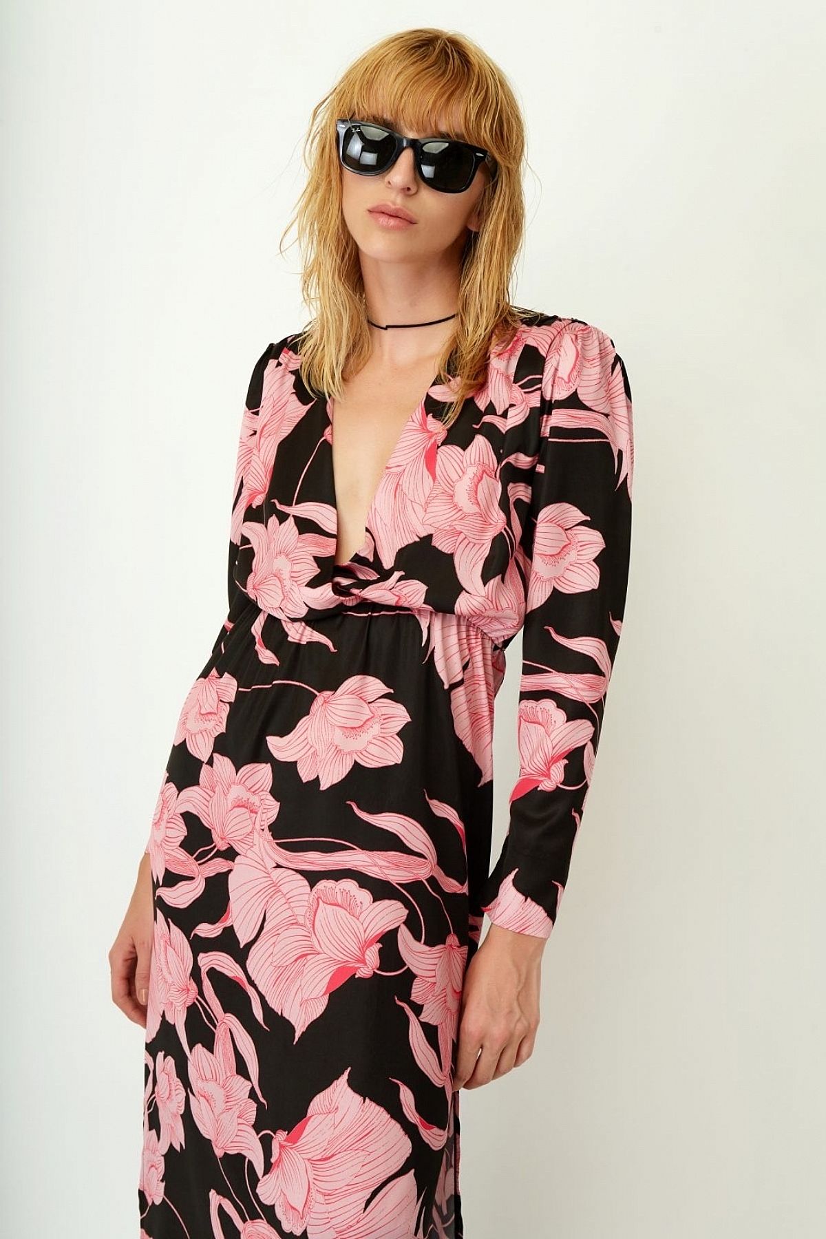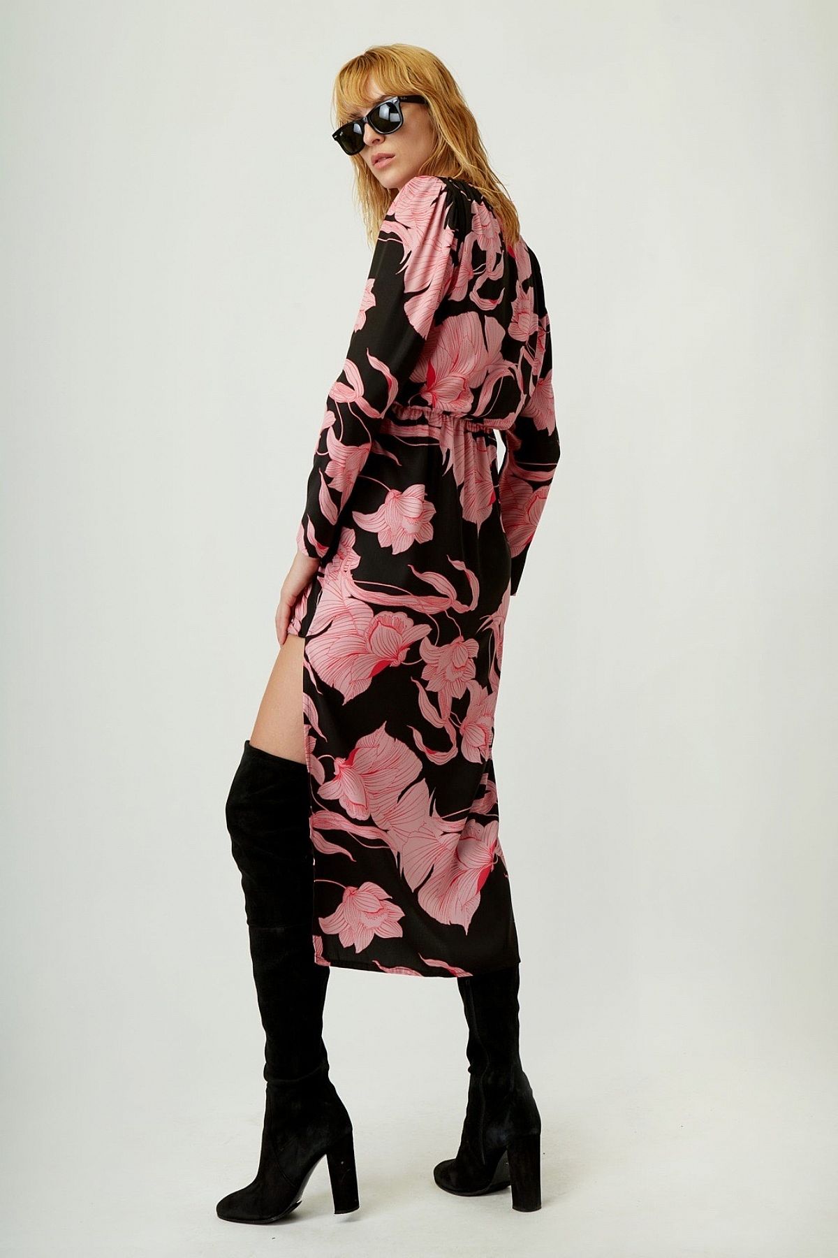 - το ύφασμα είναι μουσελίνα σε μαύρο φόντο με ροζ λουλούδια