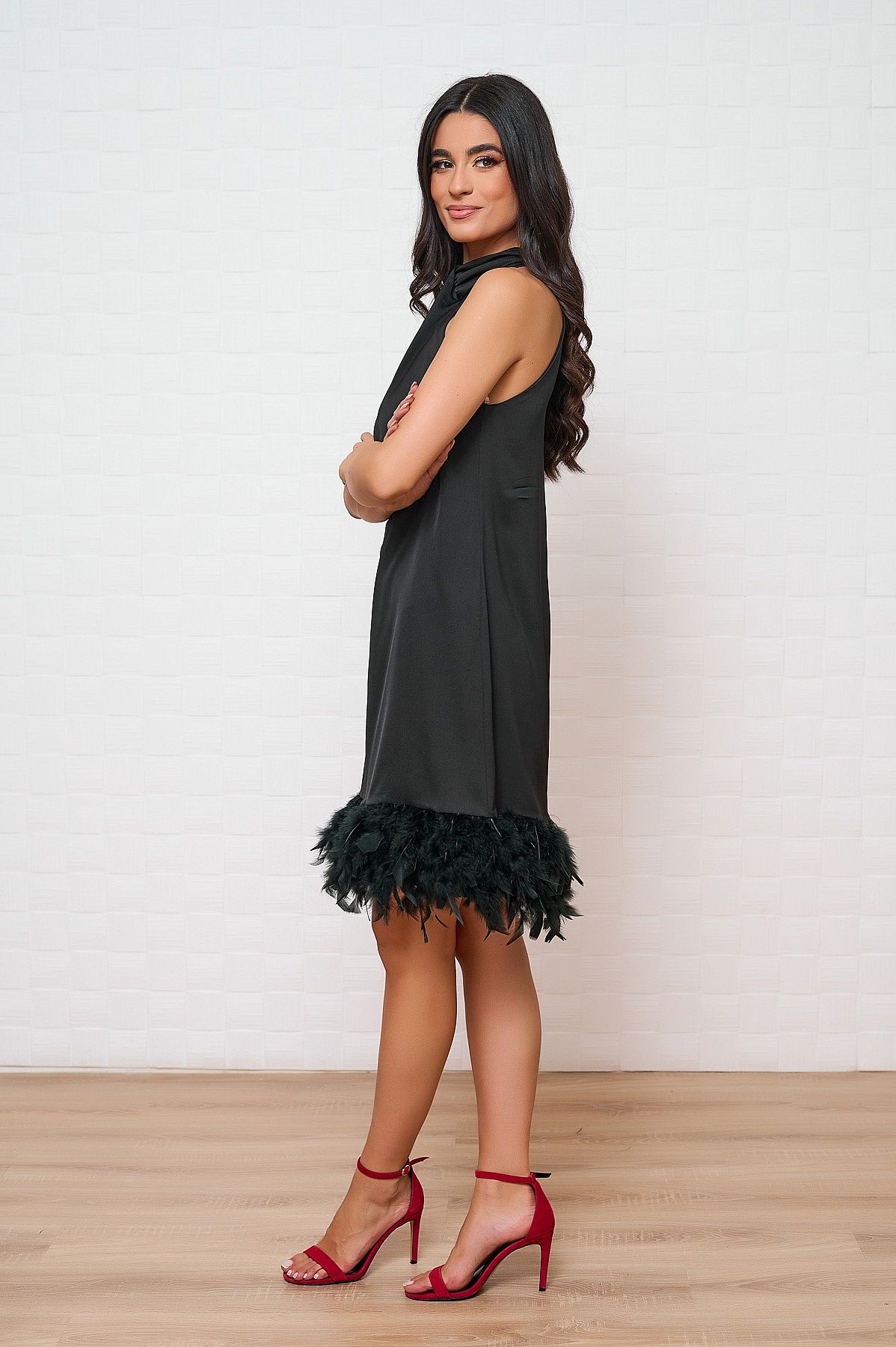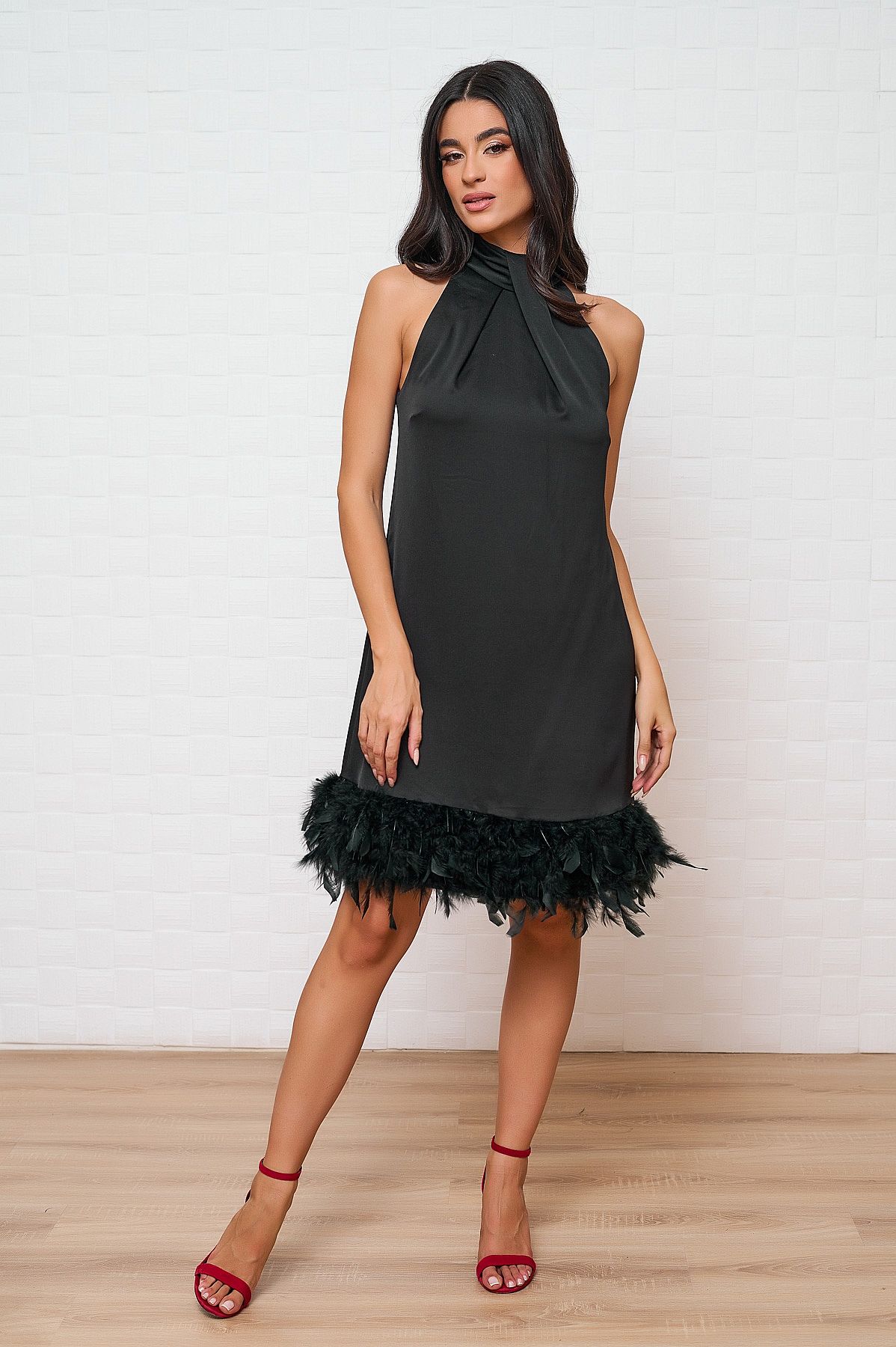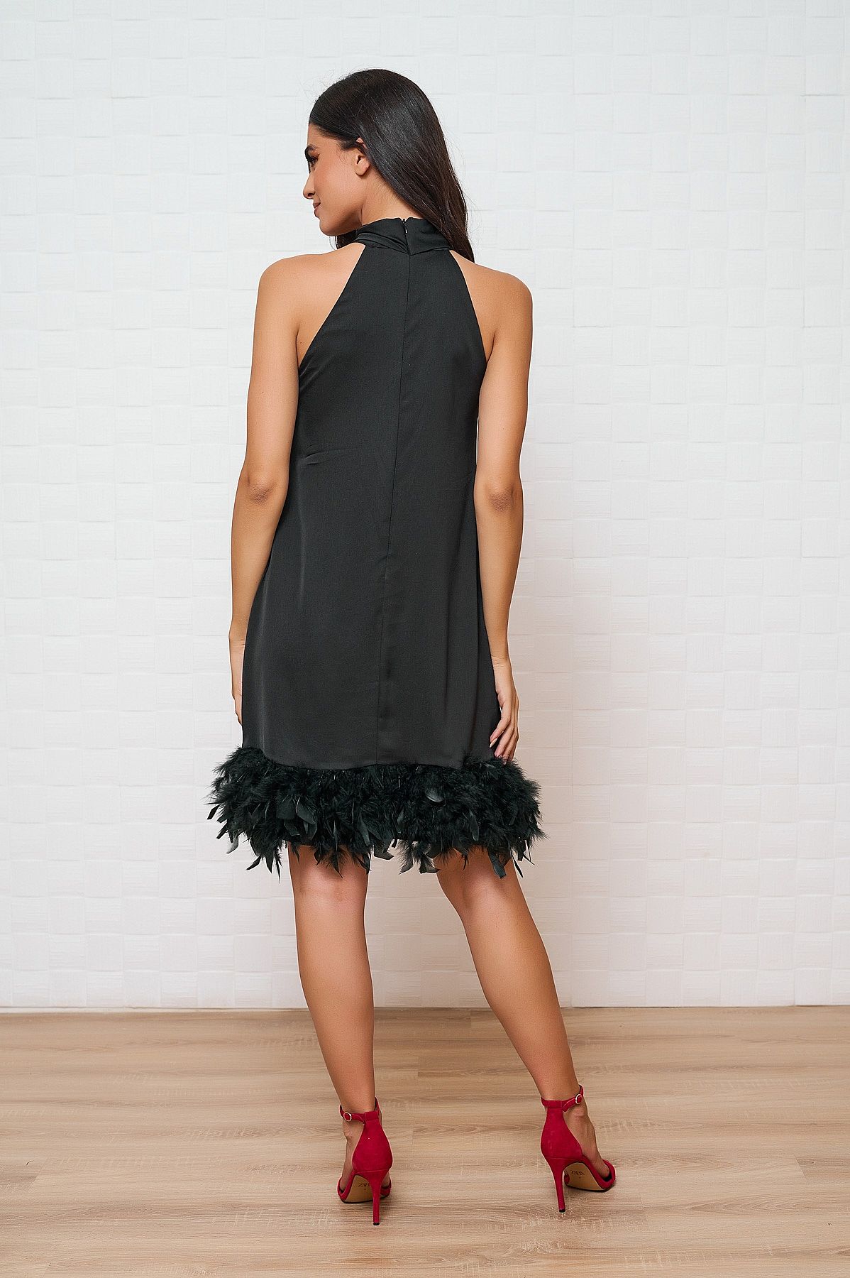 Φόρεμα Eva Mαύρο Με Πούπουλα