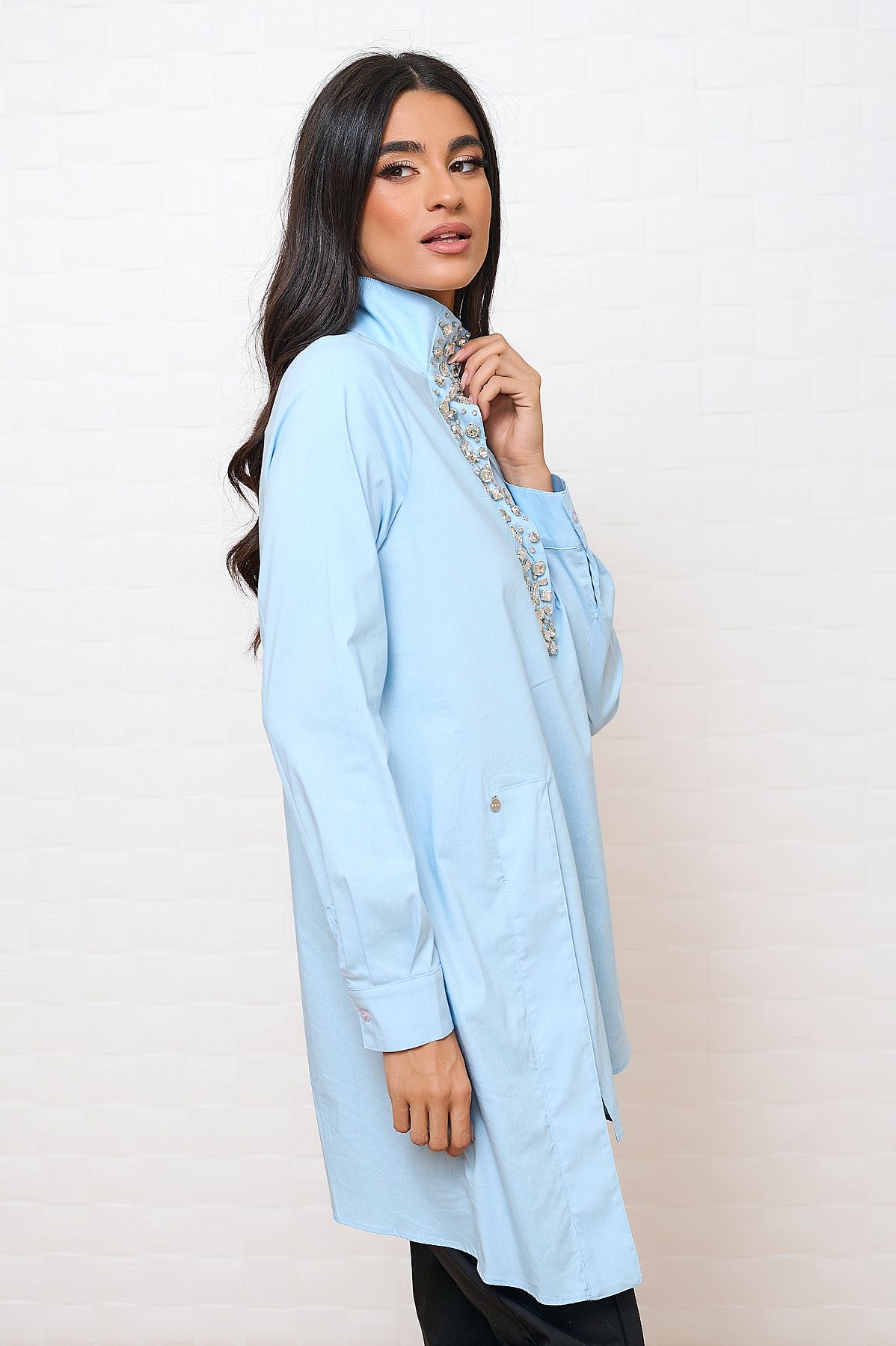 - στο μπροστινό μέρος έχει κεντημένες πέτρες