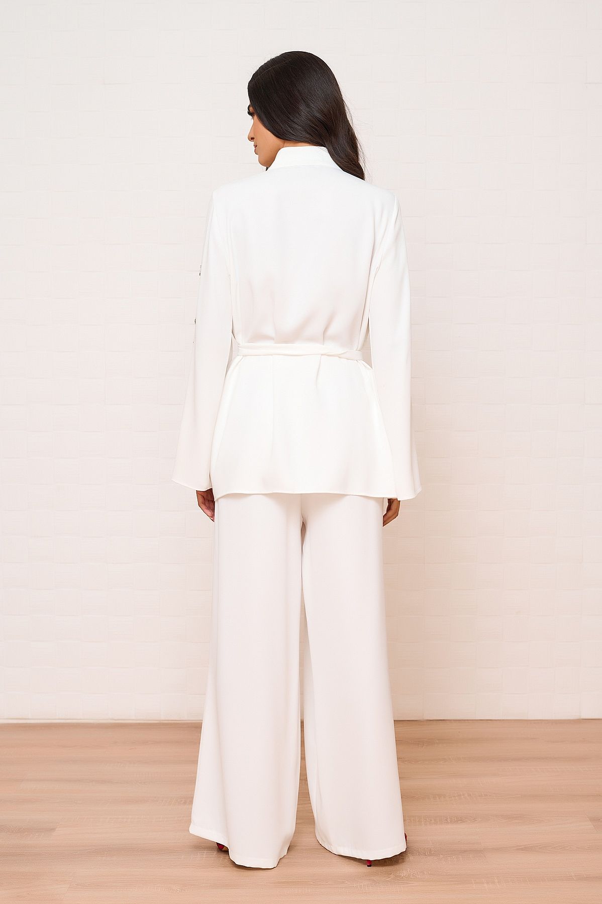 - διαθέτει ζώνη από το ίδιο ύφασμα
