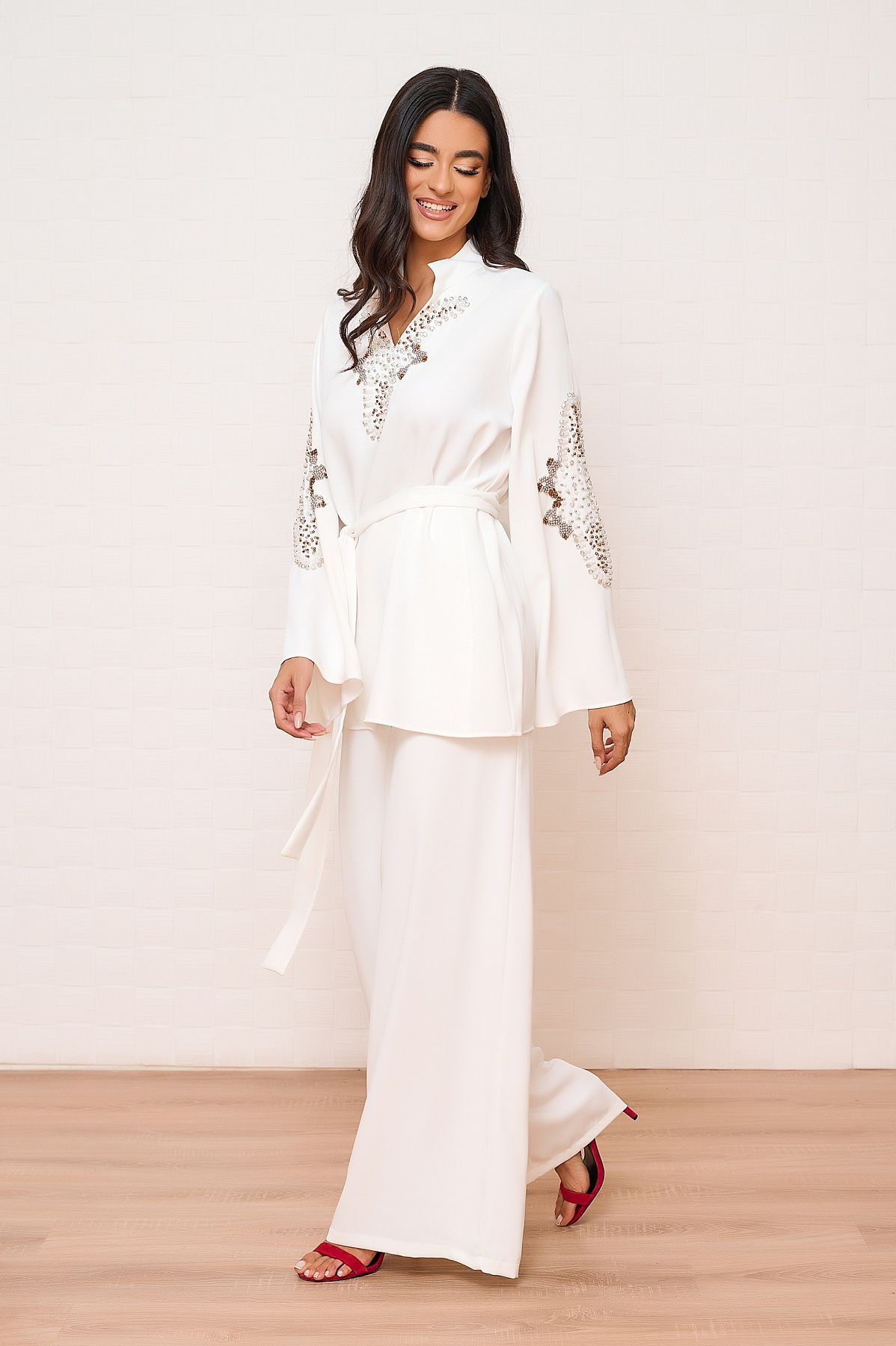 - έχει κεντημένες λεπτομέρειες από στρας και ασημί και χρυσές χάντρες