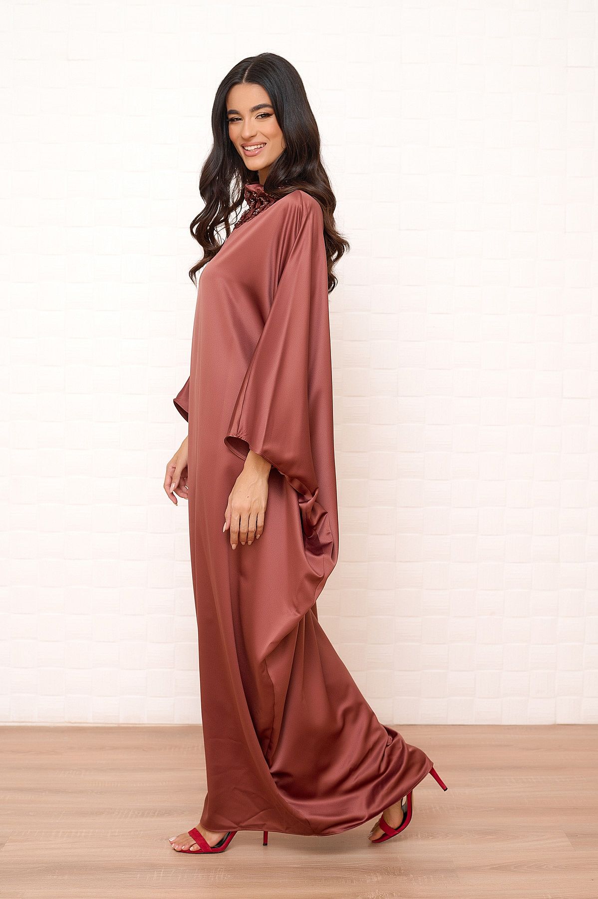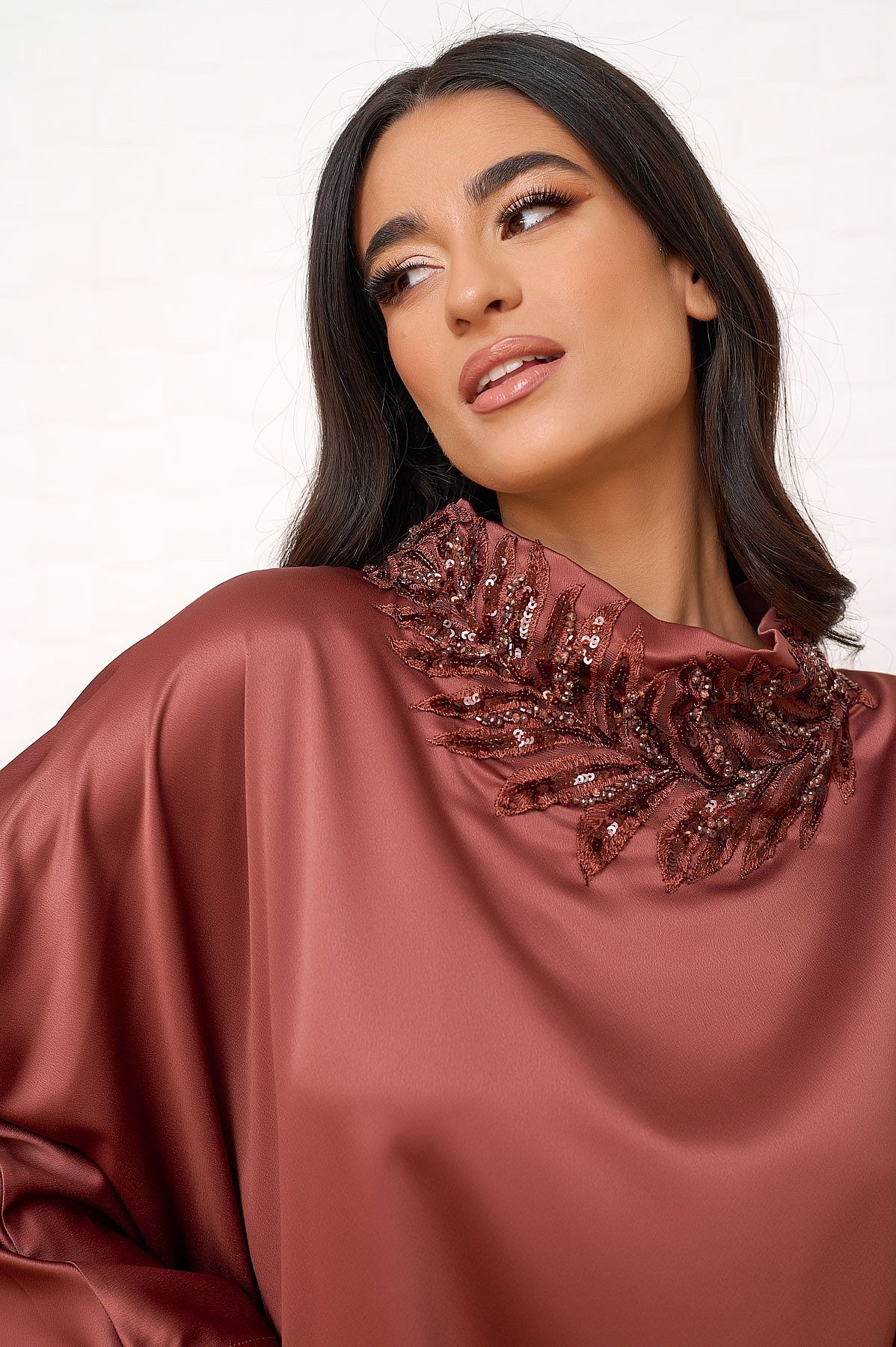 - έχει κεντημένα φύλλα στον λαιμό ο οποίος είναι λίγο σηκωμένος