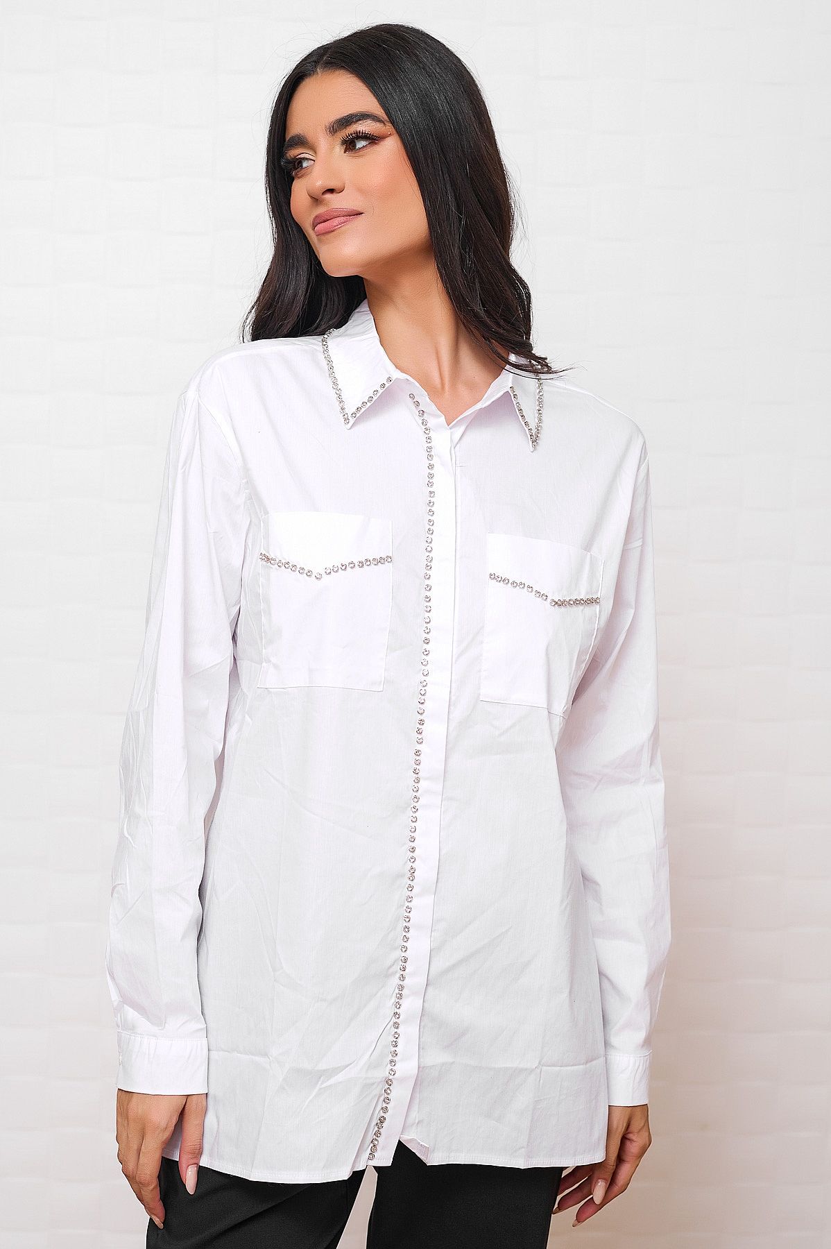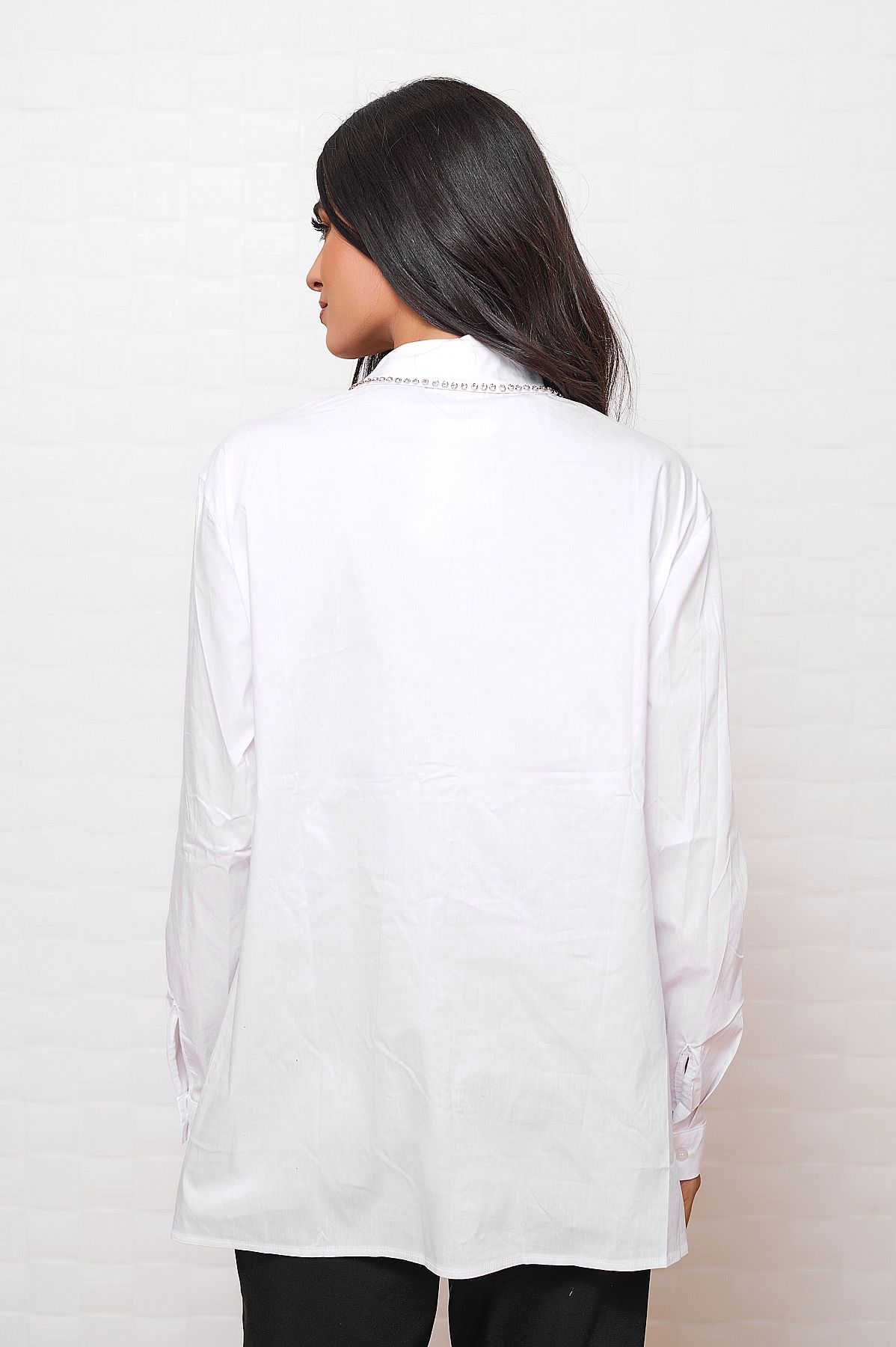 - ασημένιες λεπτομέρειες με πετρούλες και κατά μήκος του πουκάμισου