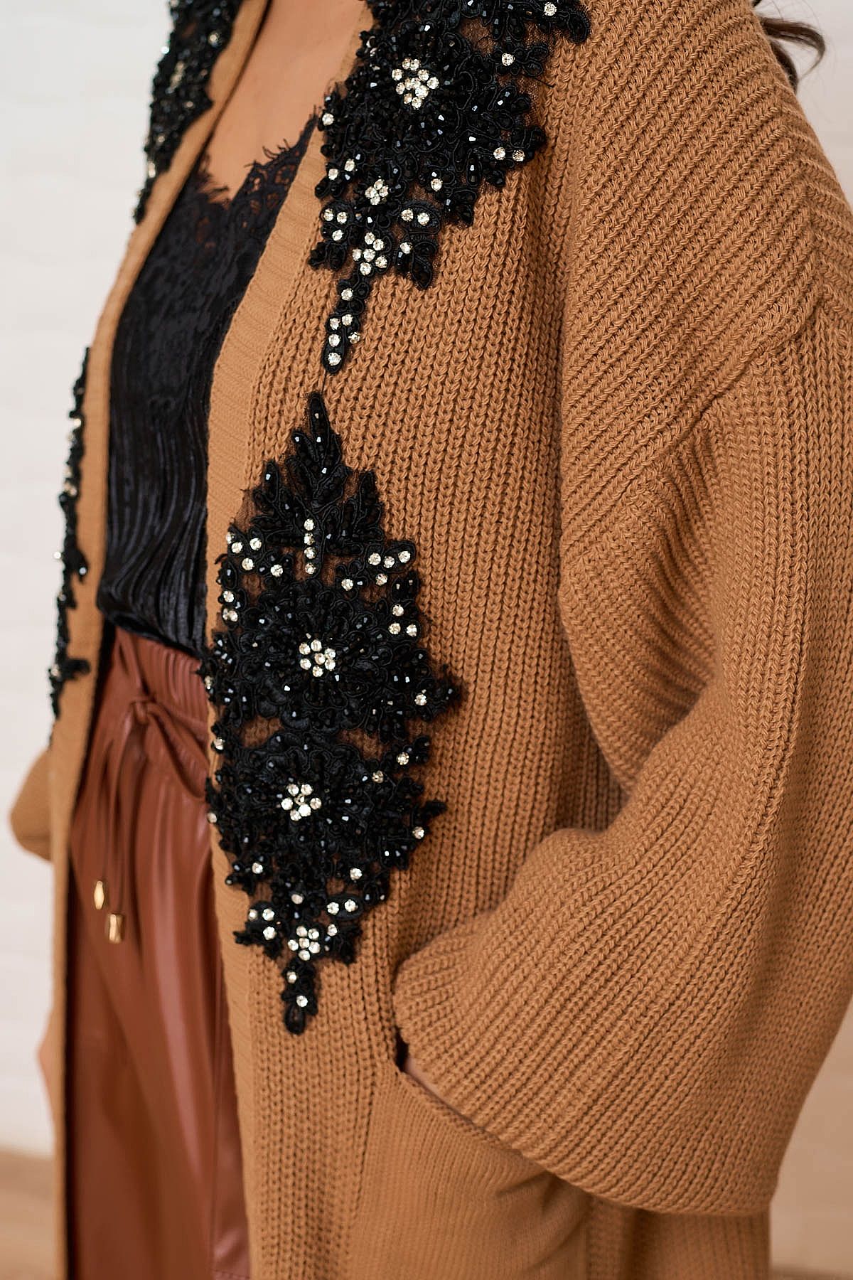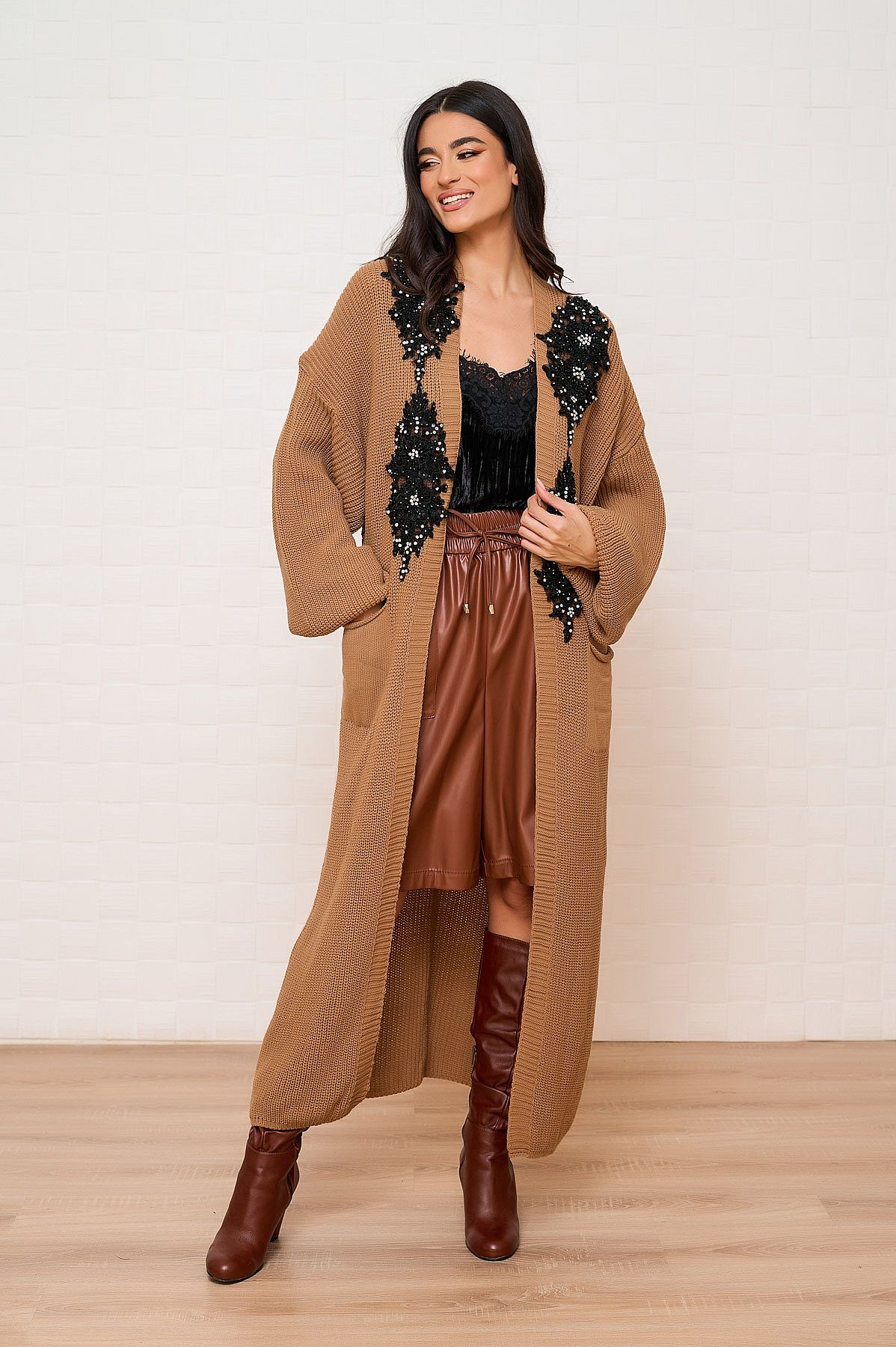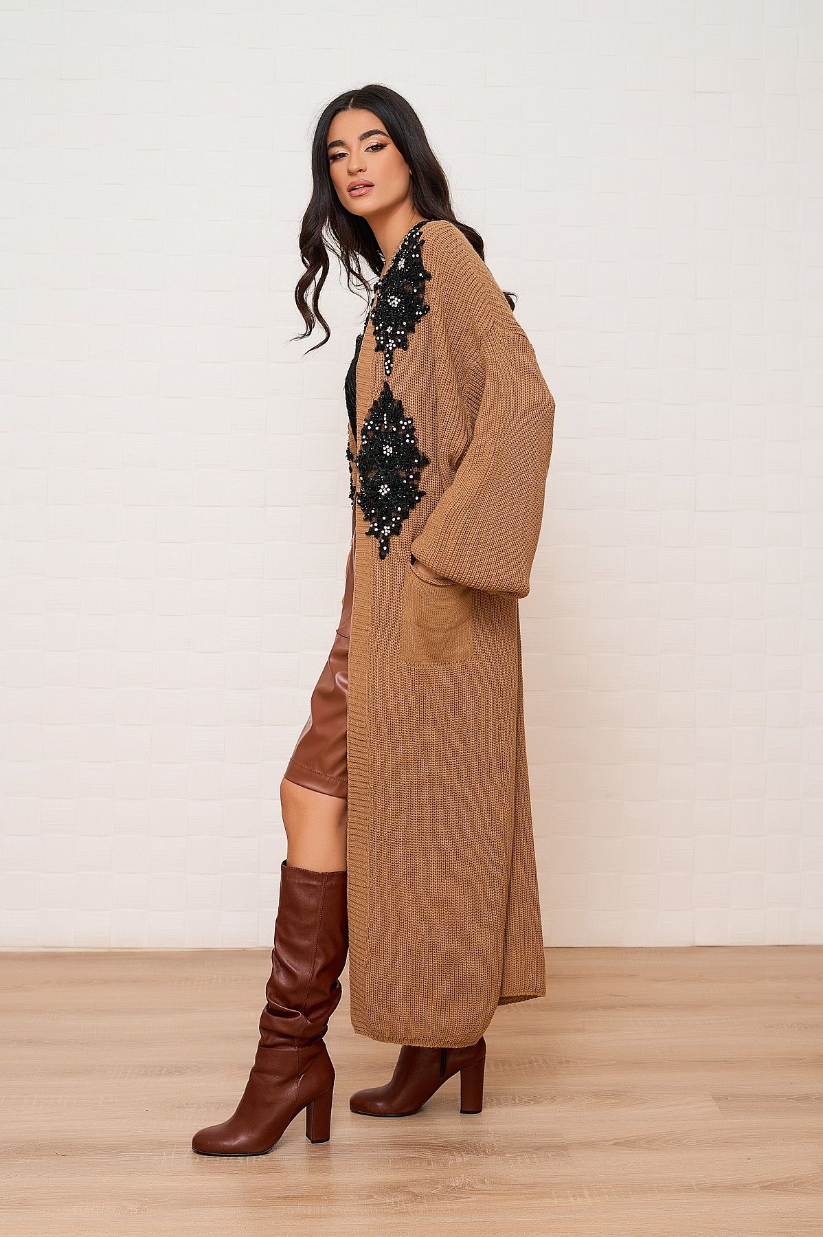 - μακριά ζακέτα με χειροποίητο κέντημα στο μπροστινό μέρος