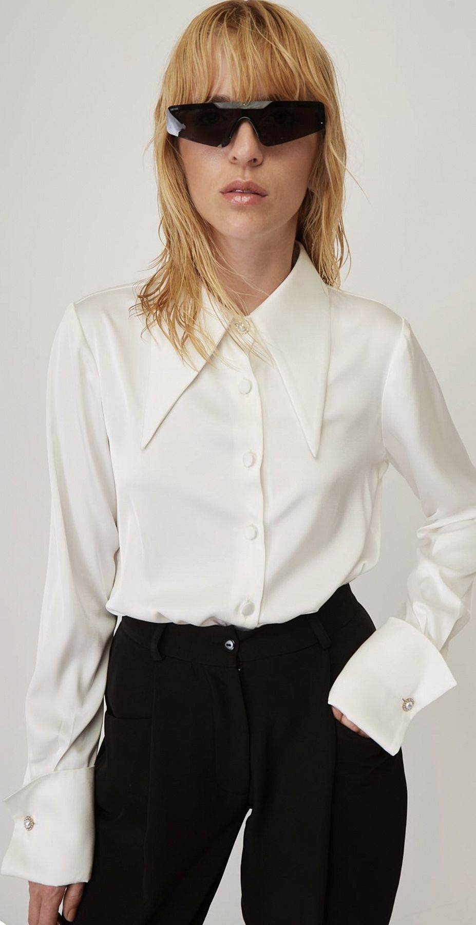 - Φαρδιά μανσέτα στο τελείωμα του μανικιού με διακοσμητικό κουμπί