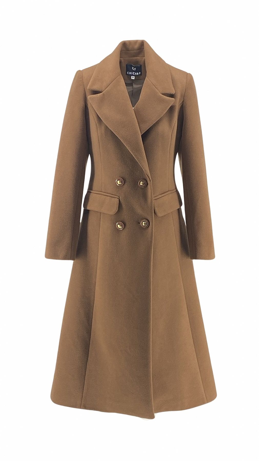 - Κλείνει με καφέ διακοσμητικά κουμπιά