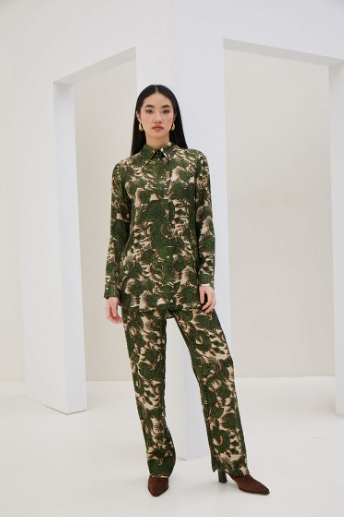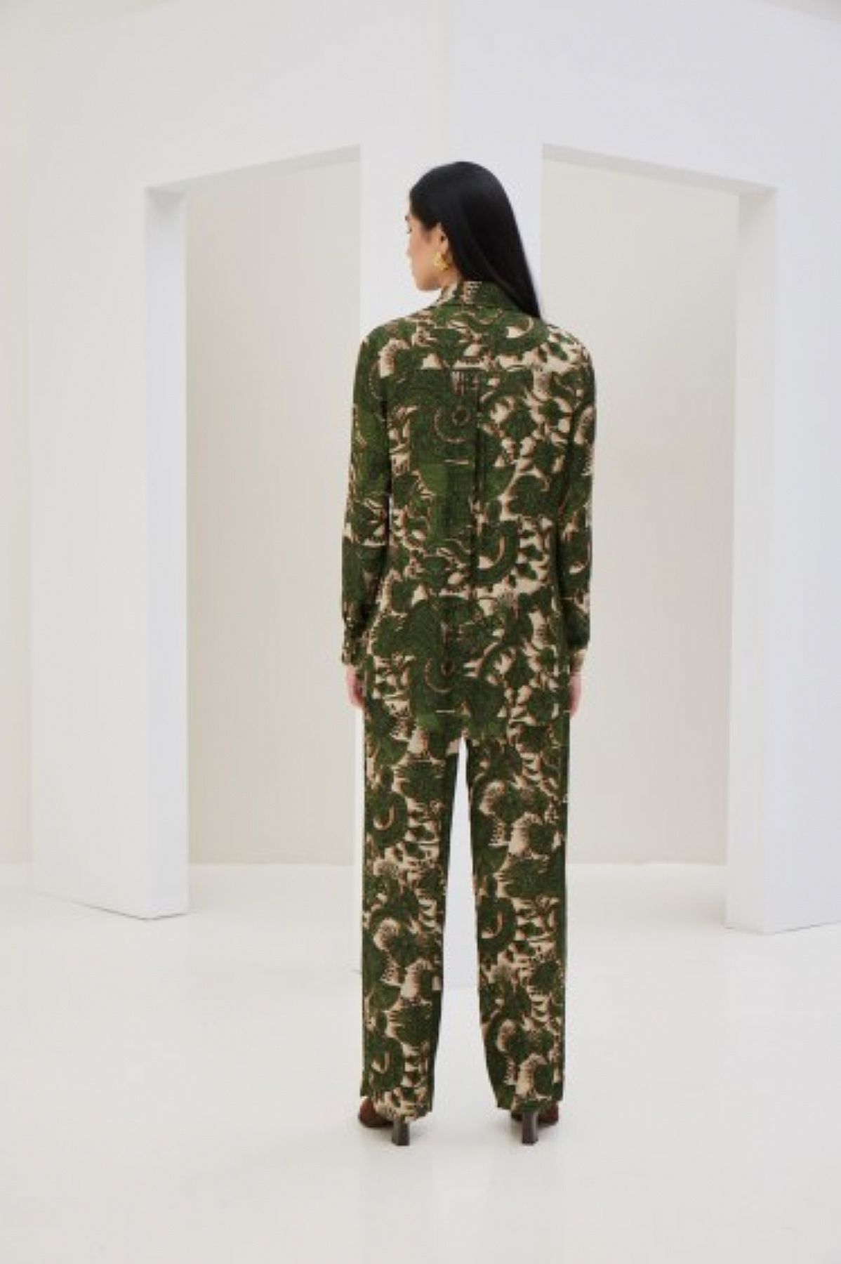 - εμπριμέ πράσινο παντελόνι