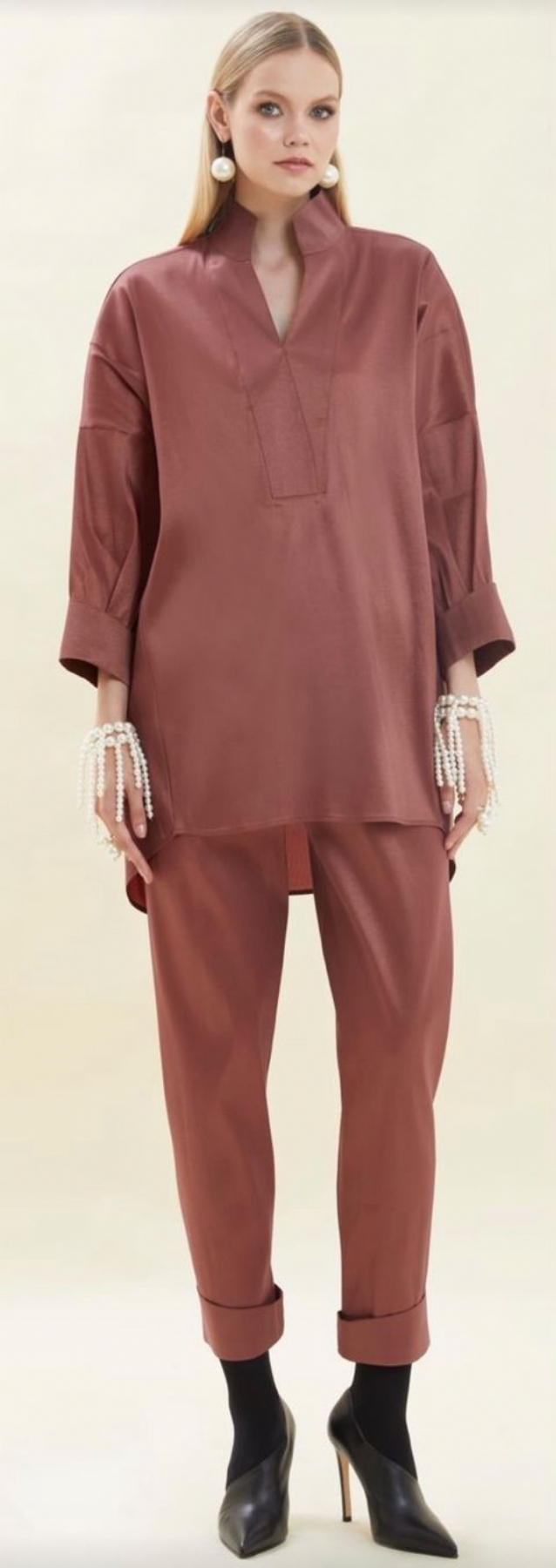 - Τρία τέταρτα μανίκι με κουφόπιετες στη μανσέτα