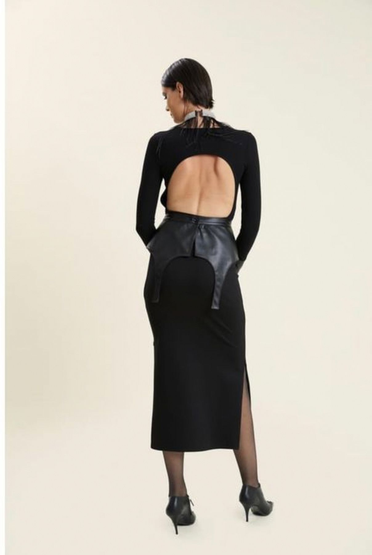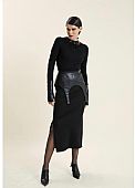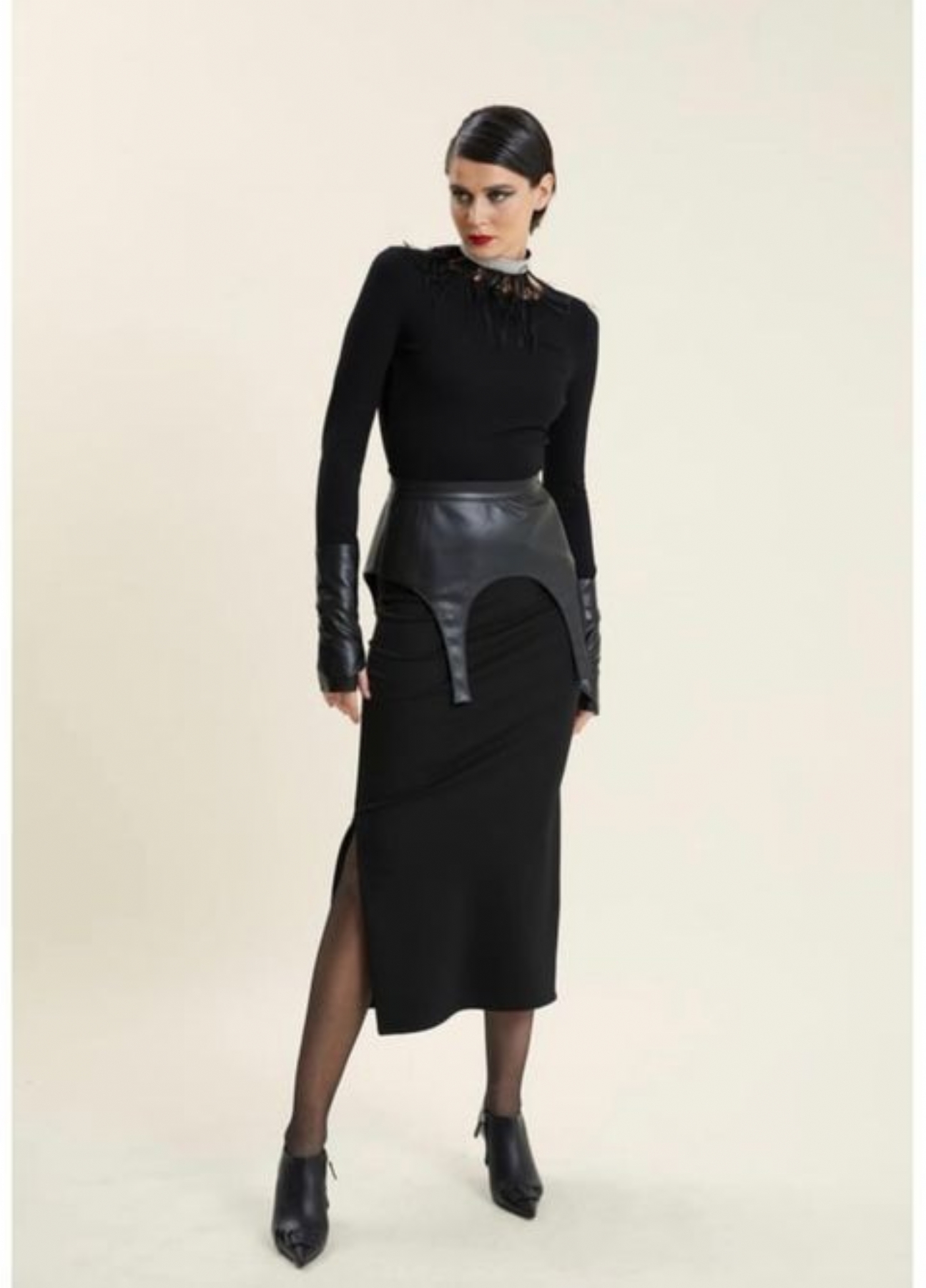 - Φούστα μίντι με ανοίγματα στα πλαινά που κλείνουν με φερμουάρ