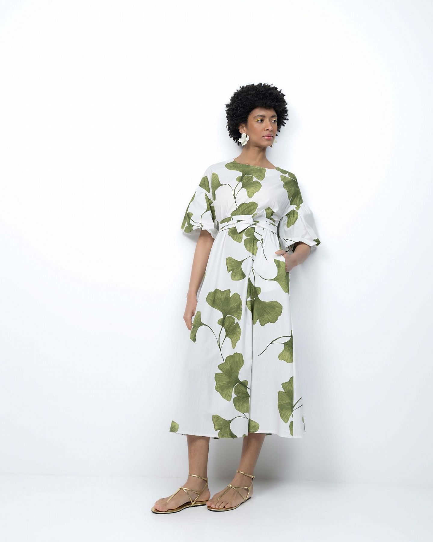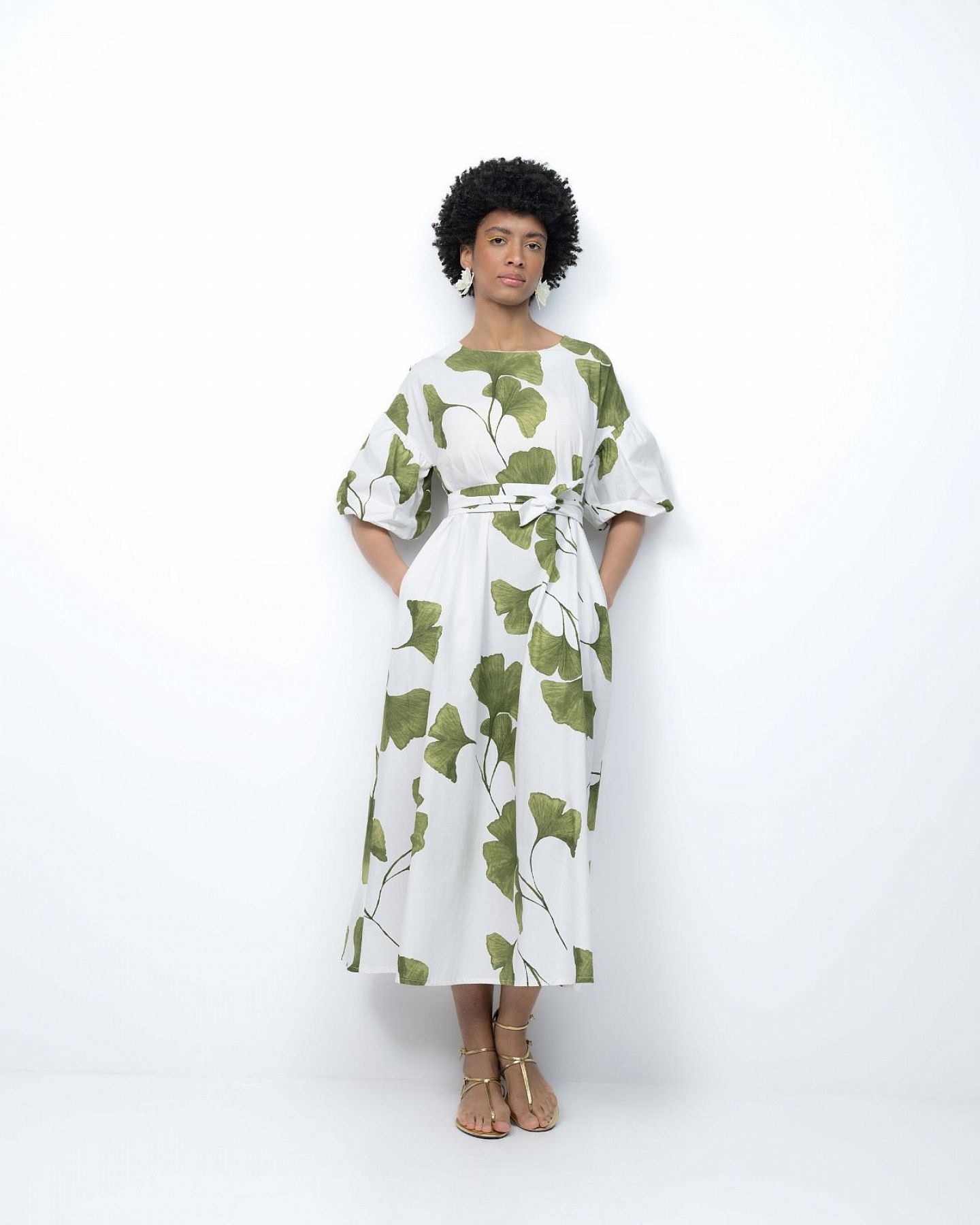 Φόρεμα Maira λευκό με πράσινα φύλλα
