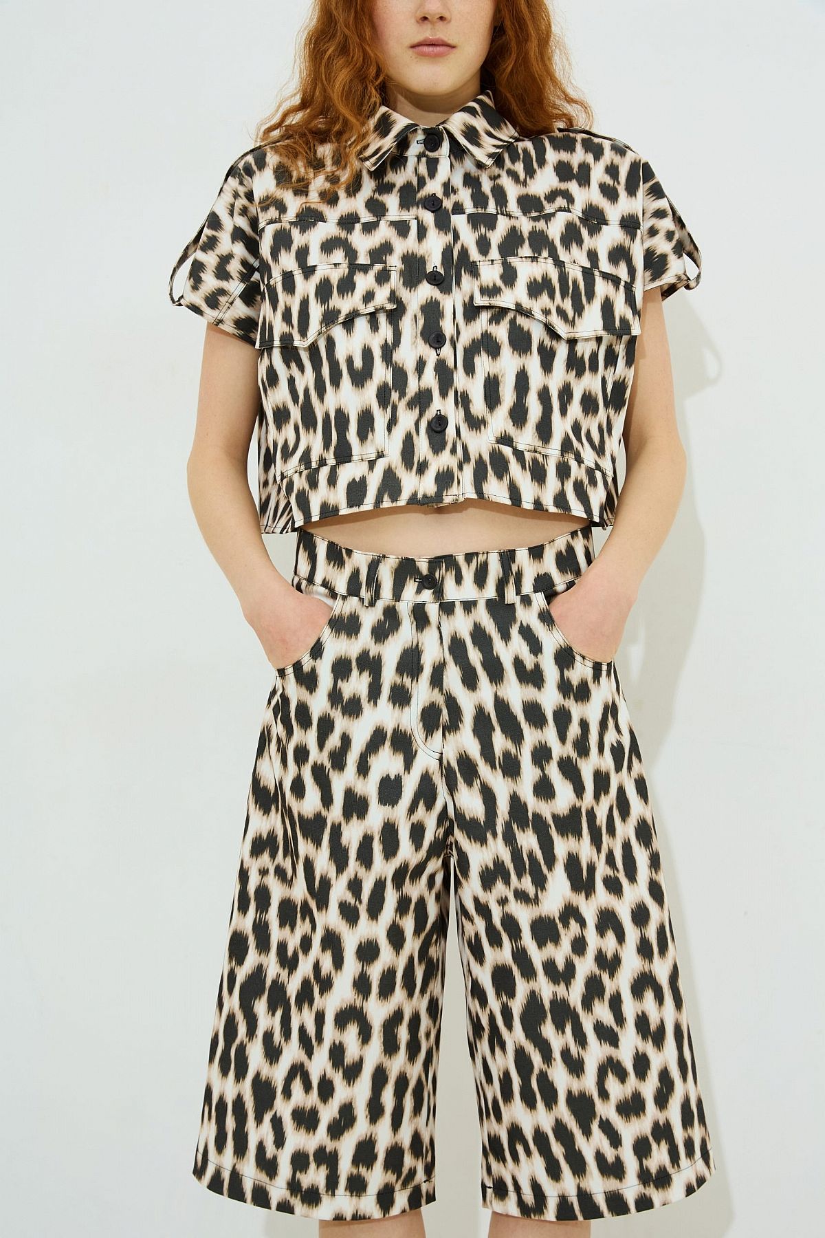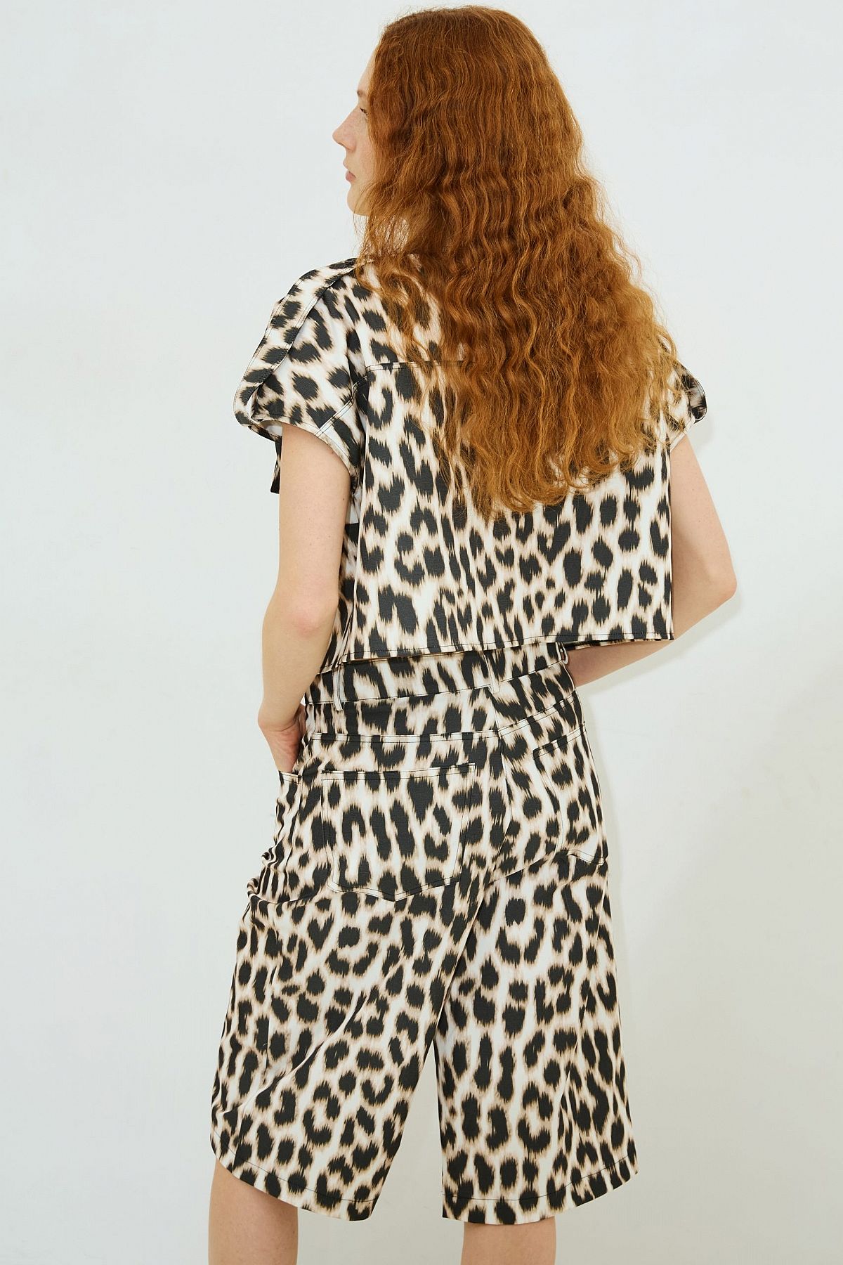 Βερμούδα Ζelda Leopard Denim Knee Shorts