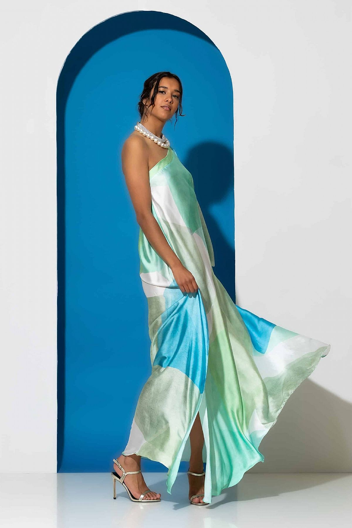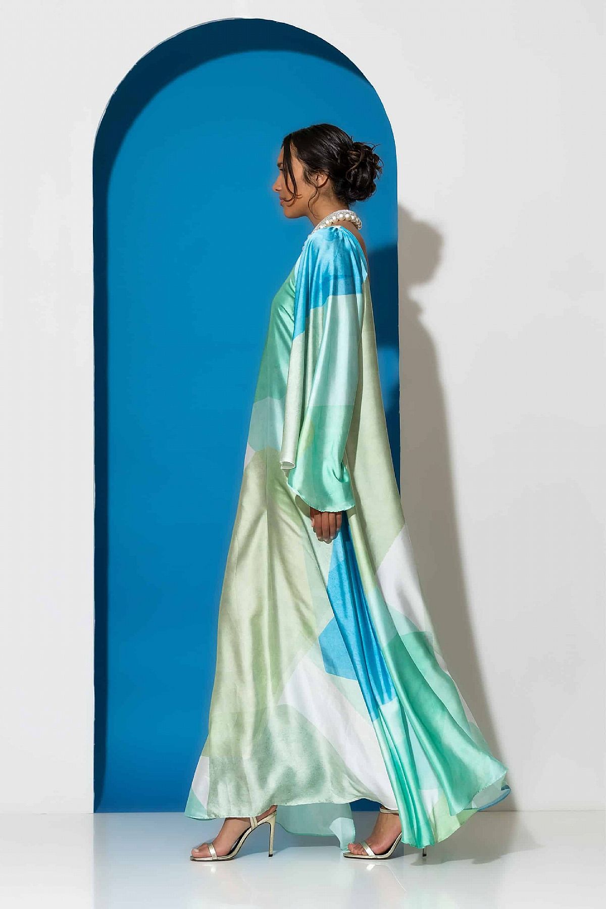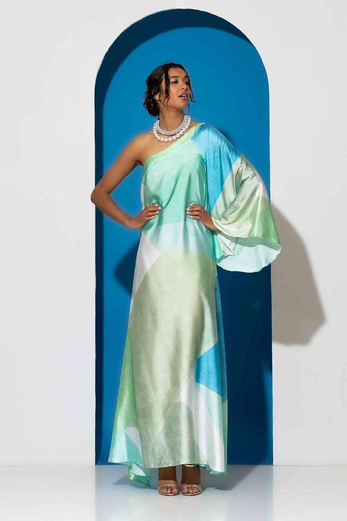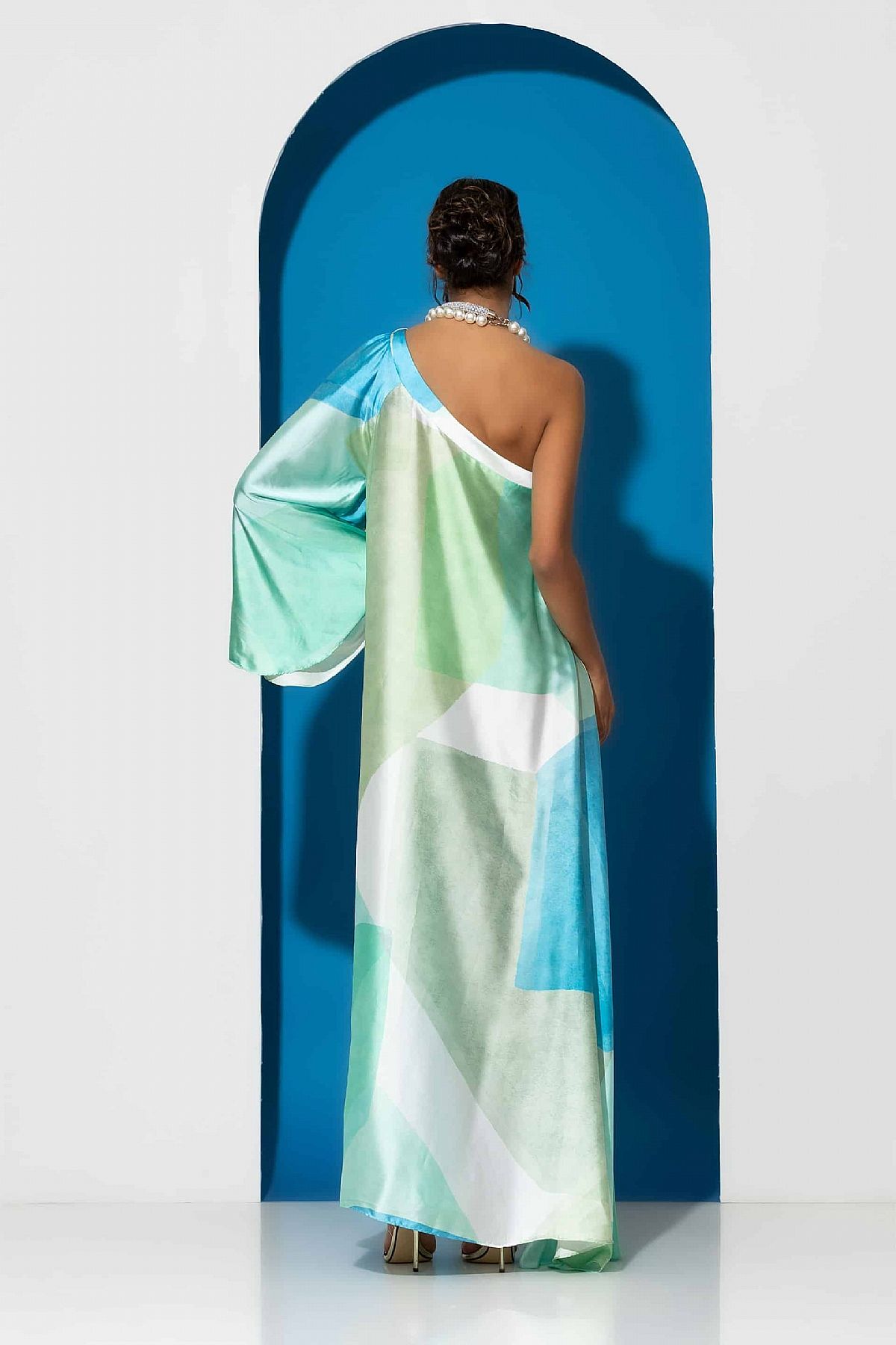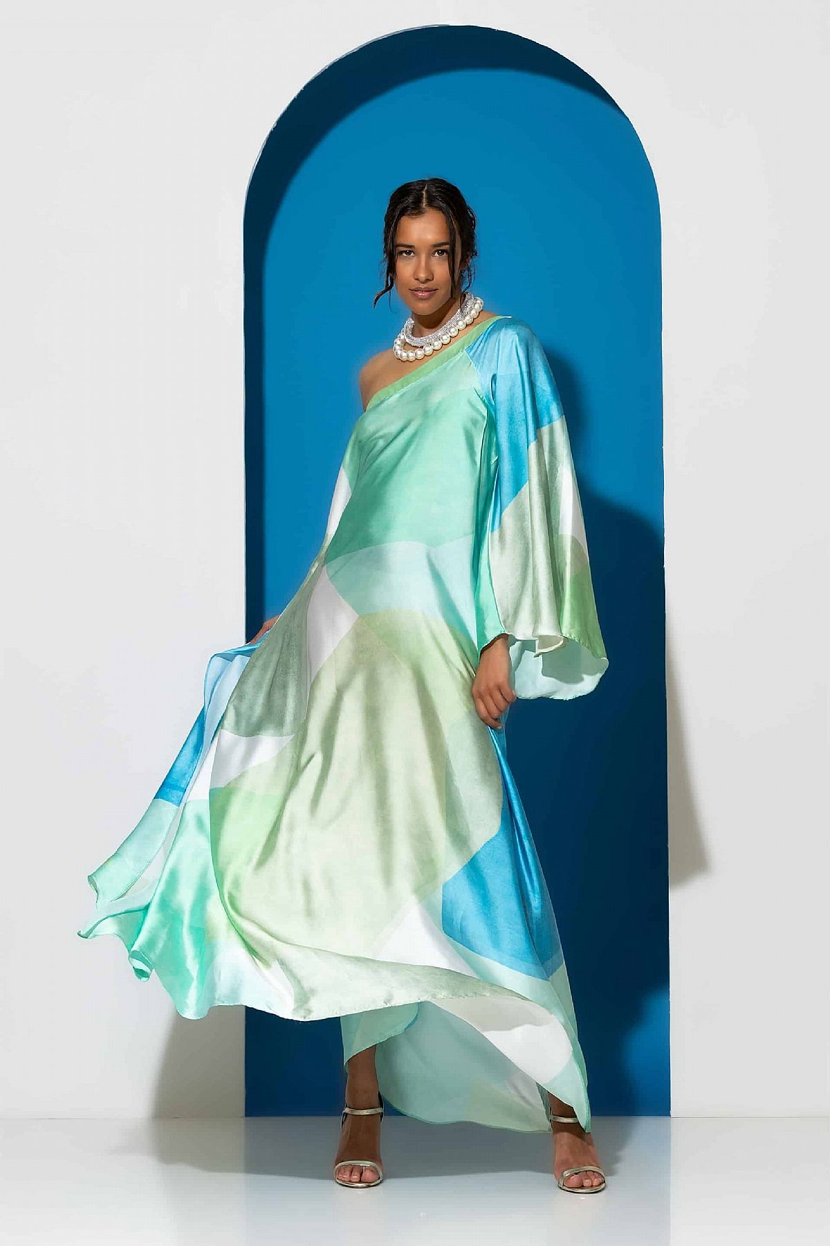 Φόρεμα Aurora βεραμάν εμπριμέ με έναν ώμο